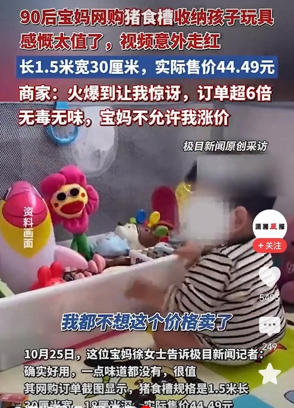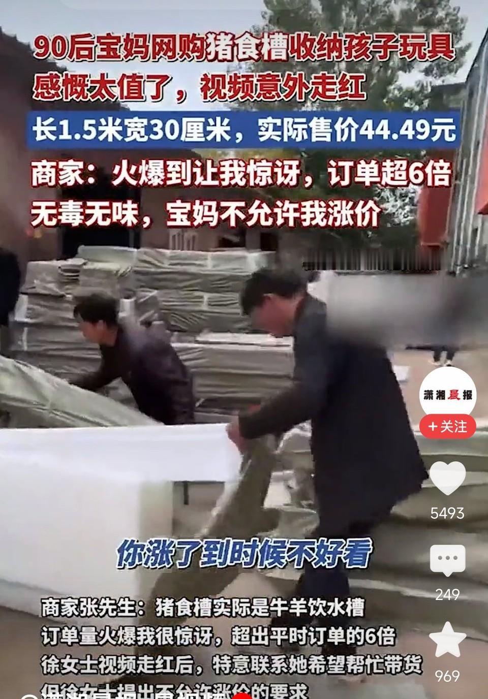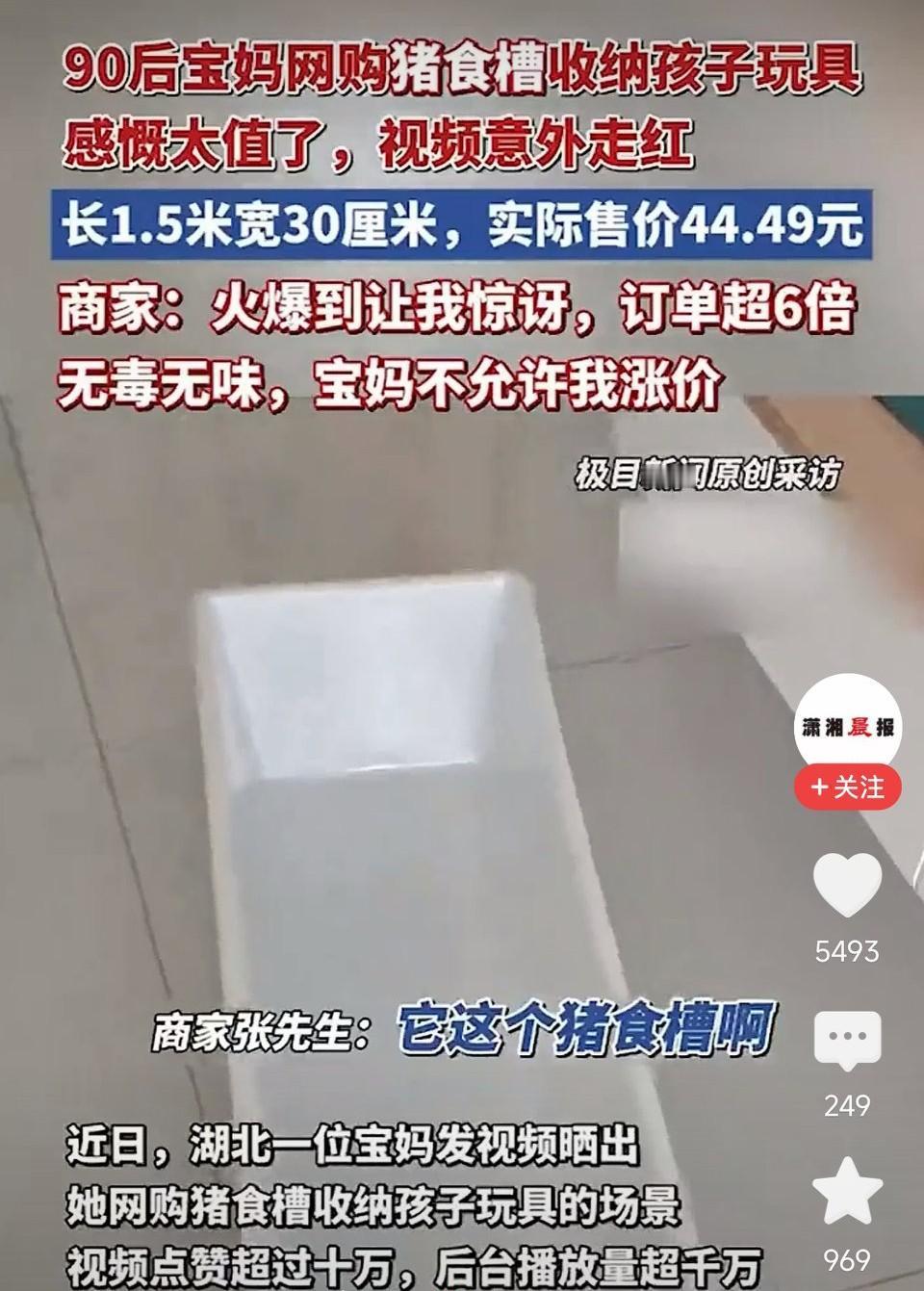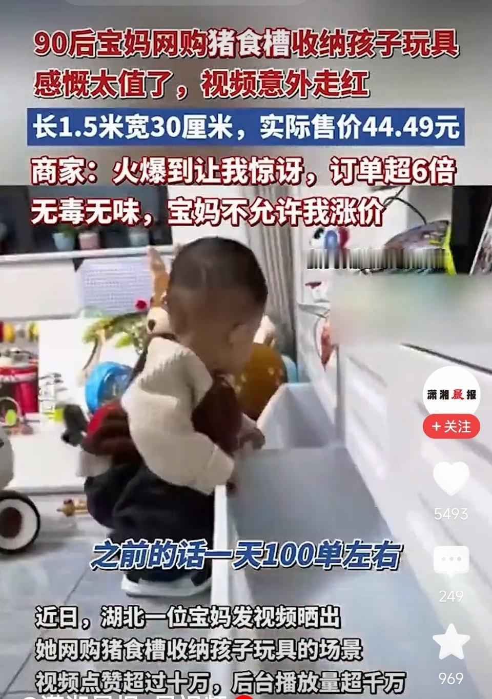 猪食槽火了?90后宝妈网购猪食槽收纳孩子玩具,视频走红后商家订单超6倍! 网友表
