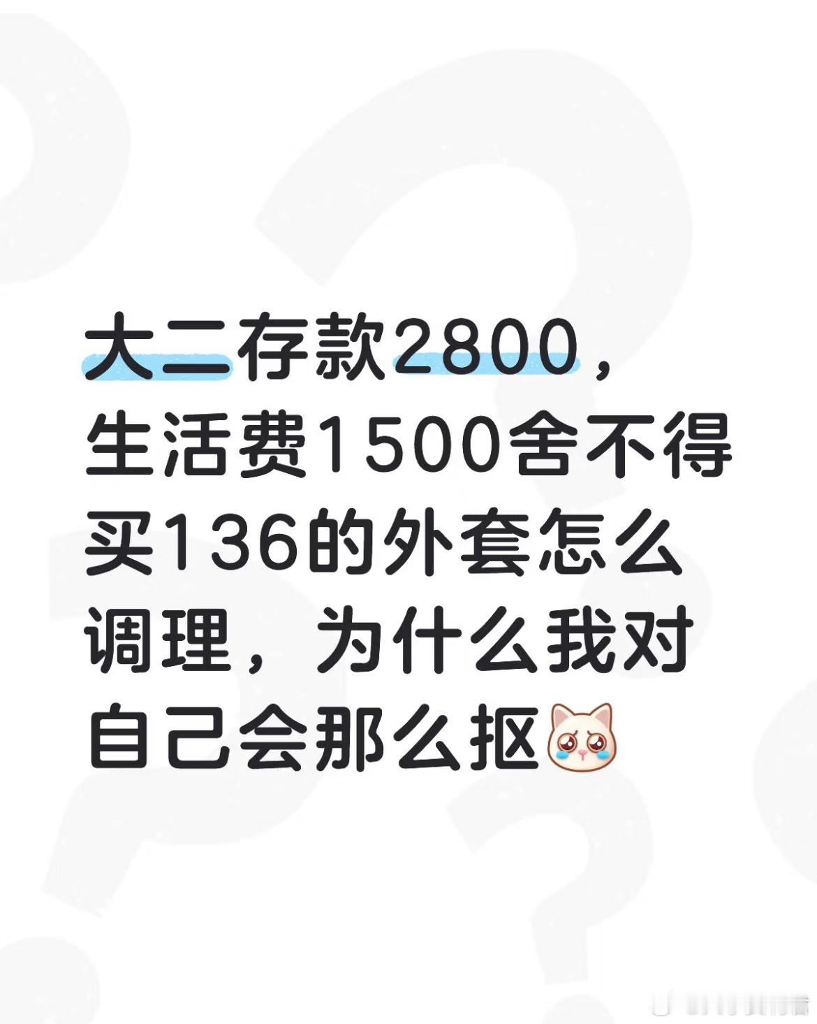 大二存款2800,生活费1500舍不得买136的外套怎么调理,为什么我对自己会那么抠[哆啦A梦害怕]