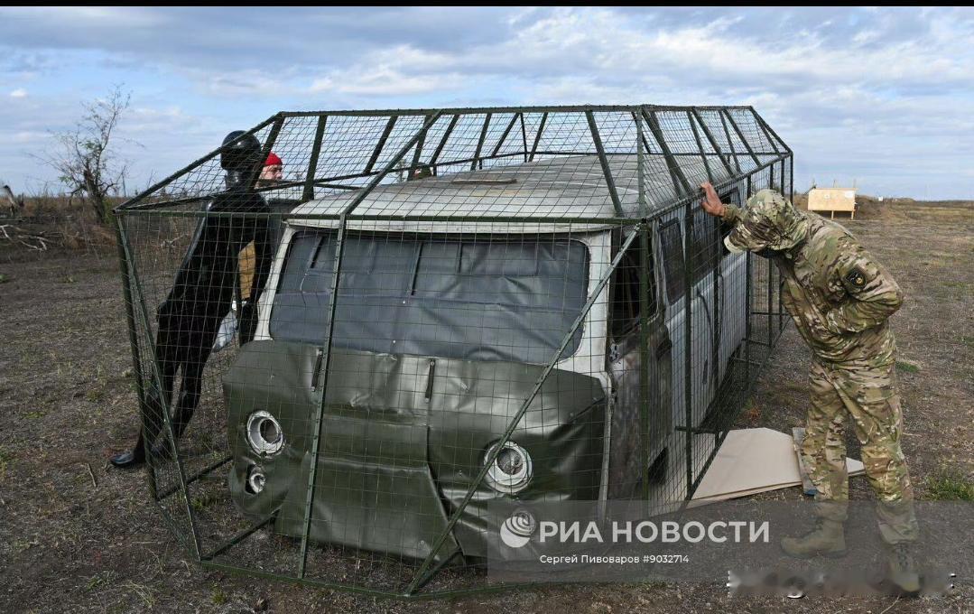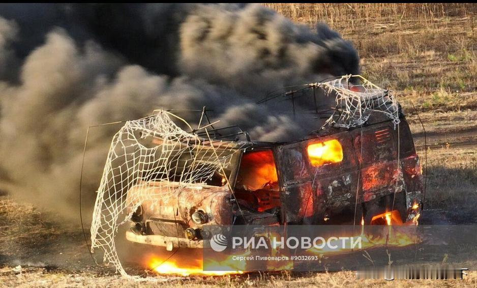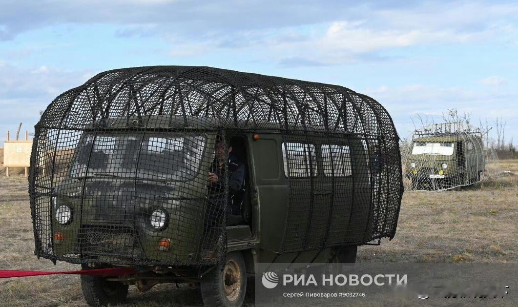 俄军测试各类型防无人机棚的防护程度,使用废弃的车辆,安装不同类型的铁网,然后使用无人机攻击!结果难以置信。 首先测试的是像渔网一样的,结果根本防不住无人机,也卡不住无人机!车辆直接被炸毁! 第二次测试用的是铁网,把车辆全身焊接上铁架,然后再安装铁网!在进行测试,结果依然是防御失败!侧面被轰出一个大洞,模特假人也被炸成粉碎。 第三次测试,使用比较结实的钢丝条,把车身全部罩住,看上去非常坚不可摧!但是等到测试的时候,无人机一瞬间把车辆摧毁,粗壮的钢丝全部散架,车辆也损毁。 经过俄军的三次测试,这三种办法,没有一款能抵挡住一架无人机攻击!都是一发炸毁!所以安装这种铁网,只不过是自我安慰而已,没有一点作用!