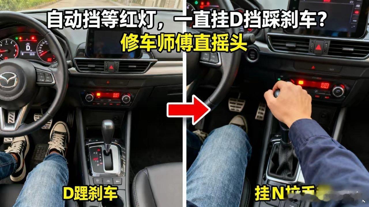 自动挡等红灯,一直挂D挡踩刹车?修车师傅直摇头