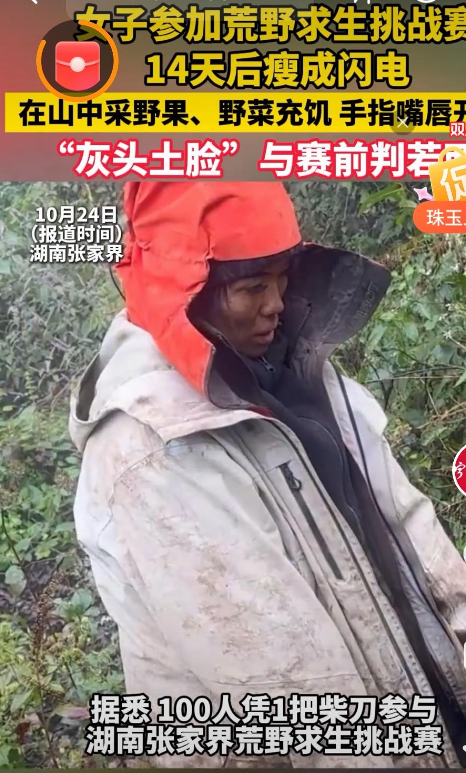女子参加荒野求生挑战赛,14天后瘦成闪电!在山中采野果野菜充饥,手指嘴唇变色,这