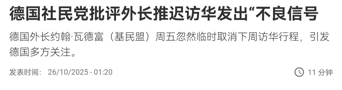来自法新社10月26日消息说,德国外长瓦德富尔取消了访问我们的行程之后,德国国内一片哗然。 消息强调,德国社民党发言人指出,瓦德富尔这样的做法,传递了不好的信号。这是德国外交方面的重大失败,对德国的影响将是非常严重的。 事实上,德国外长瓦德富尔这次先是大张旗鼓的宣布自己要来我国访问,而且信誓旦旦的想要说服我们放开稀土出口管制。但是帅不过三秒,却出现了这样的问题,这无疑让德国上下都难以接受。 所以,现在德国外长在国内面临强烈批评,也是他咎由自取。而且,这对于当前的德国来说,也是个不小的影响。