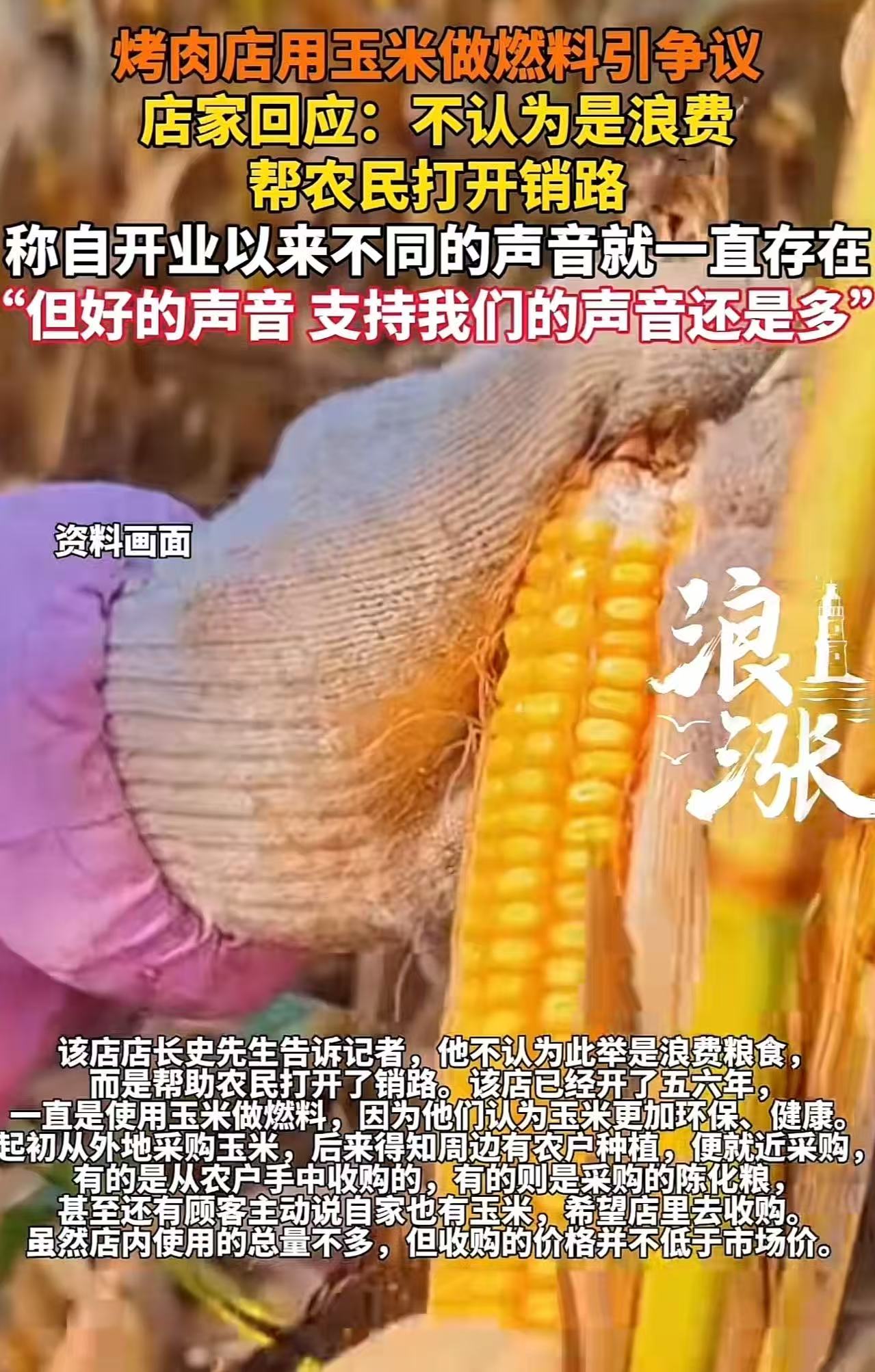 而烤肉店店家不得不站出来回应。店家表示,他们使用的玉米有一部分是从周边农户手中收购而来的。在他们看来,这并非是浪费粮食,反而是为农民打开了销路。