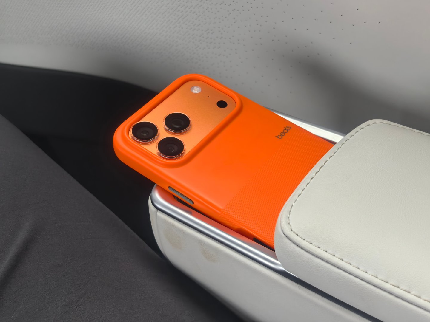找到了一个小鹏X9需要升级改进的地方,iPhone 17 pro max 加 beats 保护壳之后,没办法放入无线充电板。