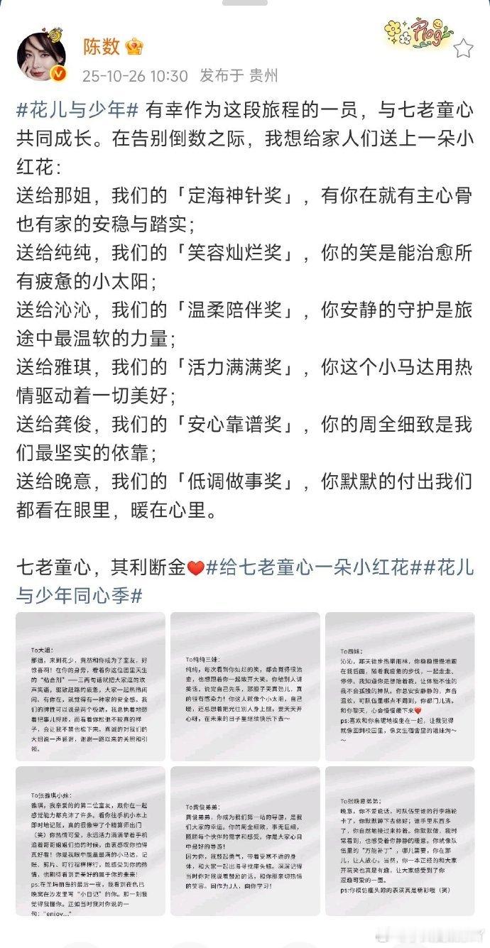 陈数 花少是我生命中最重要的记忆“我很高兴和这六位成为了一个小家庭。”陈数的话语,深深地打动了每一个观众。她把这段旅程视为最珍贵的回忆,正如她所说的,真的无可替代。