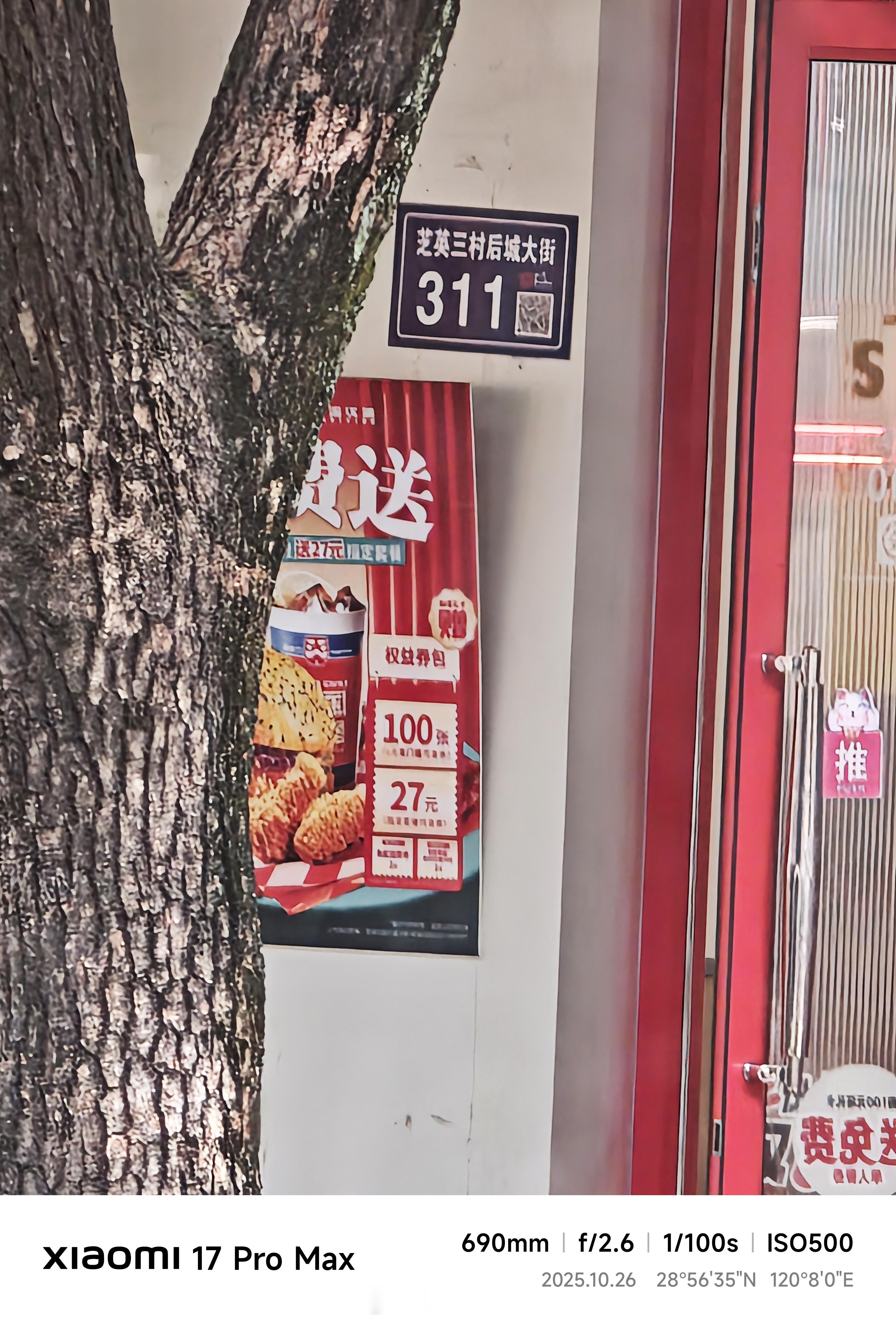 在小米之家用OPPO Find X9 Pro和店里的小米17 Pro Max同个位置,隔着店里的玻璃,用30倍拍了两张照片,对比一下,你们觉得如何?小米的30倍是690㎜焦段,而OPPO的则是700㎜焦段,小米看着AI后期,比较明显,OPPO的我默认的啥也没开~