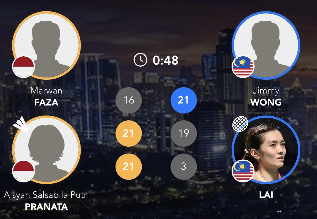 混双决赛:马尔万/普拉纳塔🇮🇩 16-21、21-19、21-3 🇲🇾黄显维/赖沛君