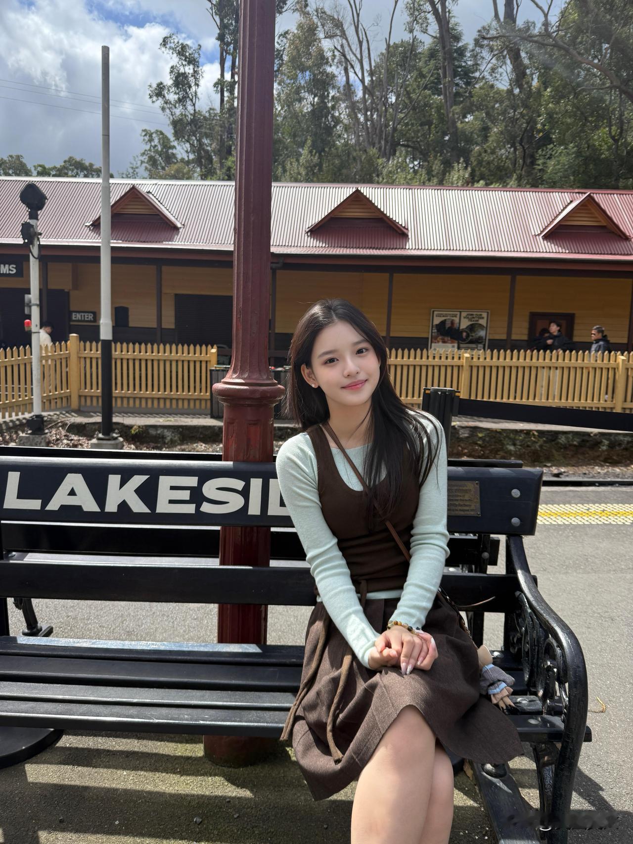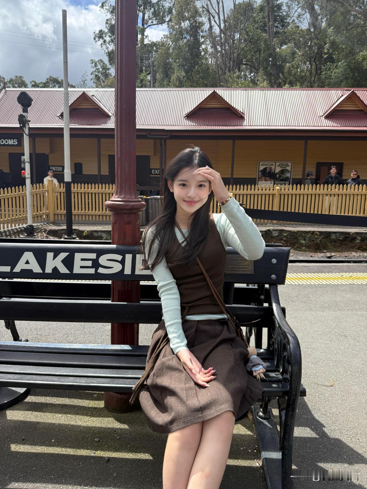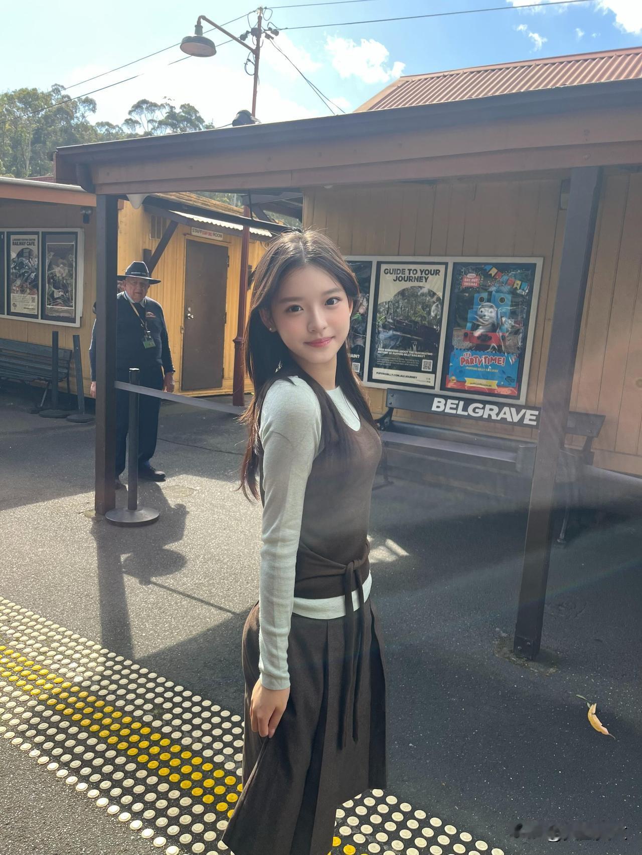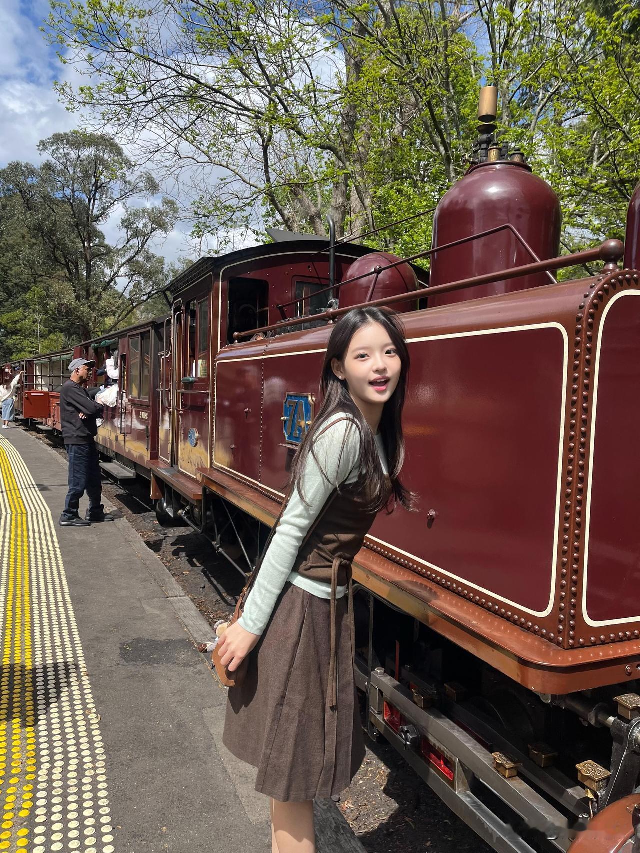少女乘着绿皮火车,悠然自得地欣赏沿途风景。