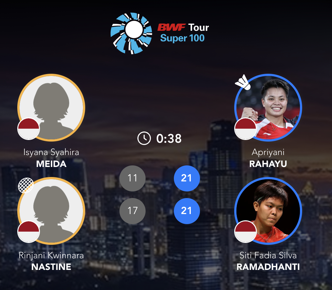 女双决赛:拉哈尤/拉马丹蒂🇮🇩 21-11、21-17 🇮🇩伊斯亚纳/林加尼