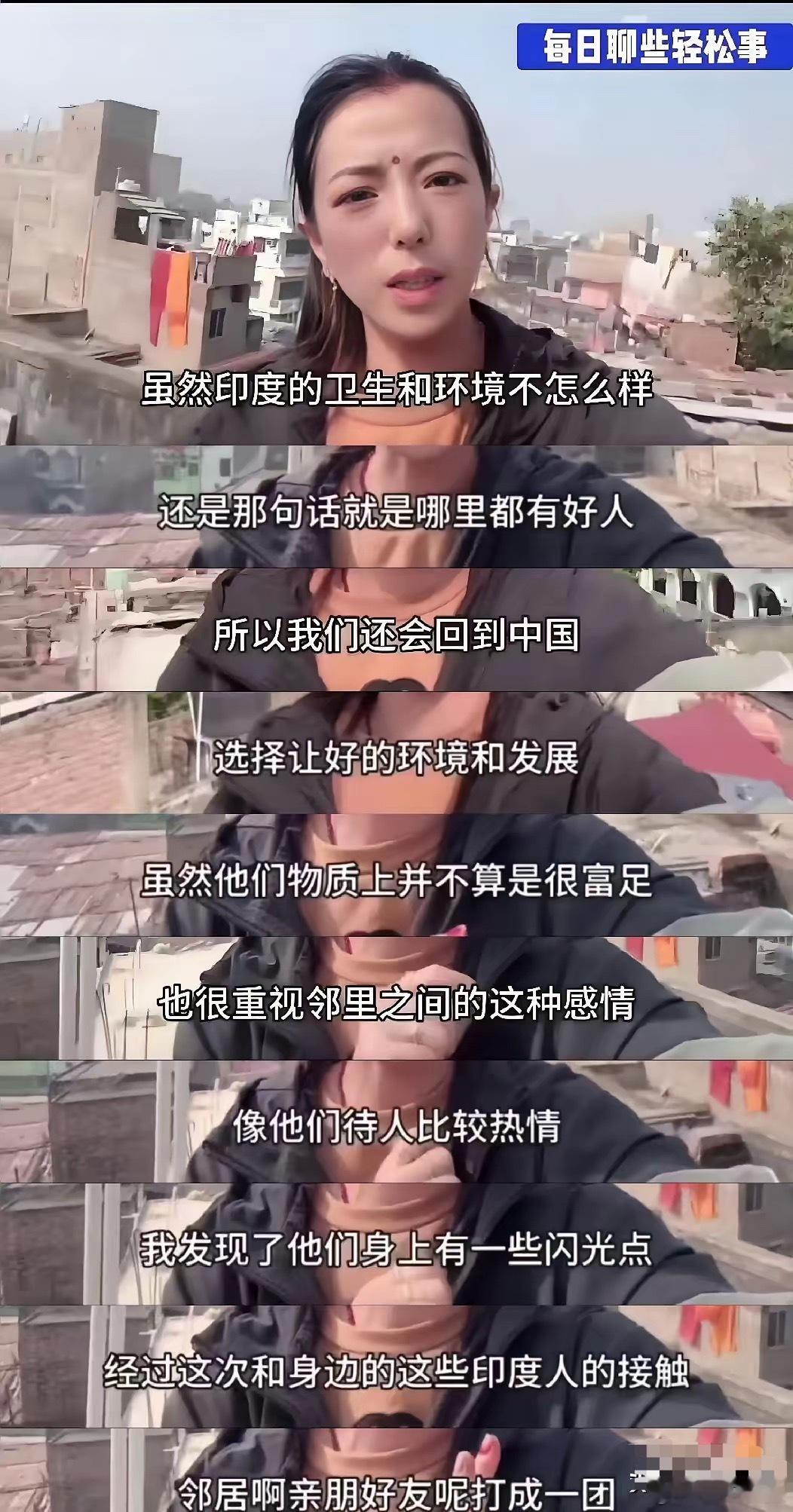 黑龙江女子,去印度三次后,便决定嫁给一个印度男人。她说,在印度能感觉到精神上的无比满足。现在她准备带印度丈夫回国发展,因为国内的环境和发展会更好。[怒]