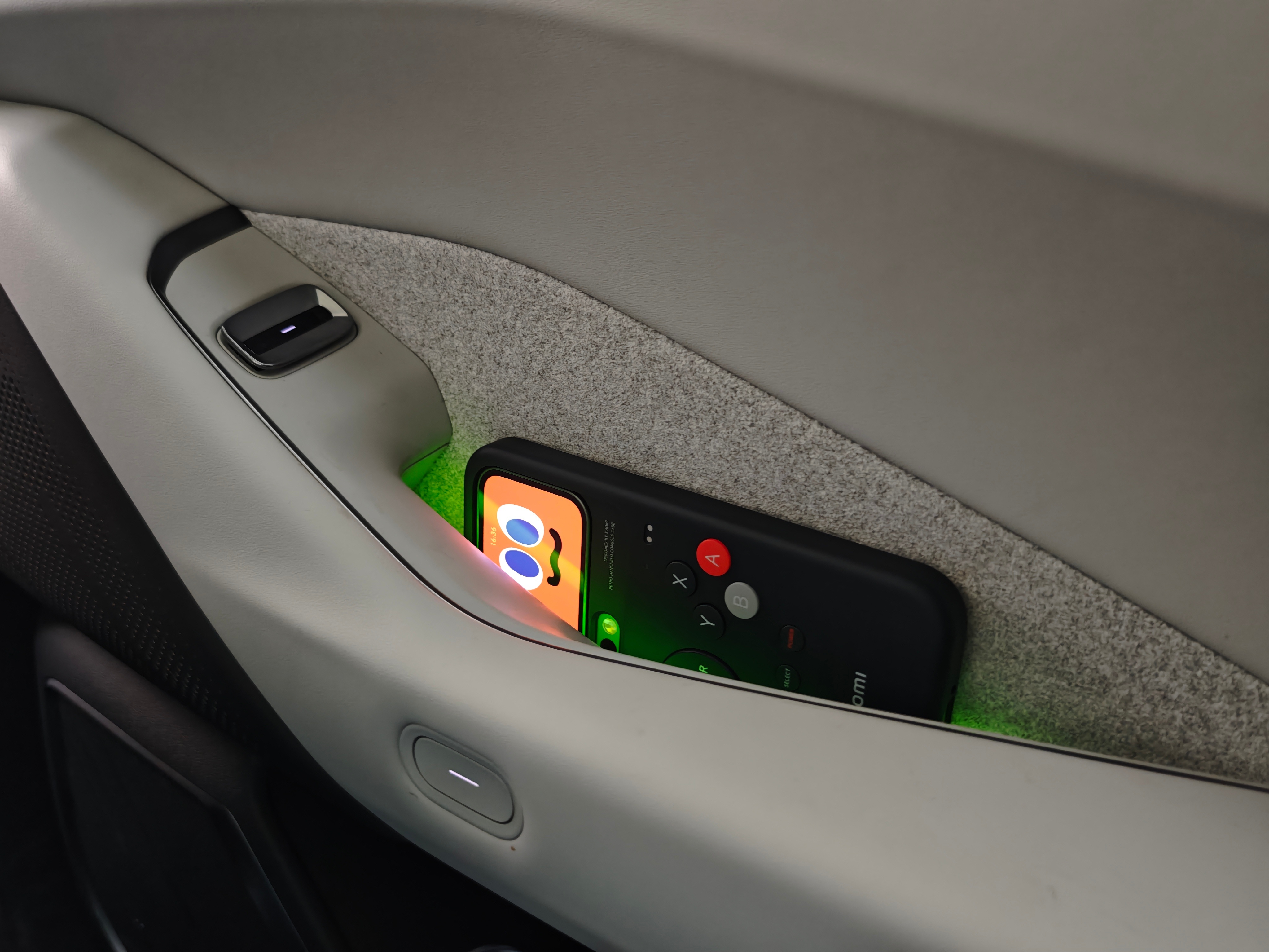 小鹏新P7这个门板上面的槽,放手机刚刚好。