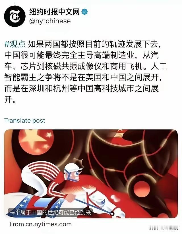 纽约时报2025年5月19日发文章说,照这架势走下去,中国要把高端制造全拿捏住,从汽车、芯片,到核磁共振机、大飞机,统统不在话下。就连人工智能争霸,以后也不是中美两国的事咧,成深圳、杭州这些城之间掰手腕了。 咱这制造业真不是吹,占全球29%,2023年产值4.66万亿美元,比美国多出一大截。联合国数据更扎势:中国造的东西比美、德、日、韩、英五国加起来还多。钢铁产了全球一半,稀土也攥在手里,无人机、高铁、新能源车这些,全球份额过半。 专利这块更亮堂。2023年光发明专利就报了164万件,美国才51.8万,不到咱三分之一。到2024年底,有效专利攒到501万件,地球头一个破400万的国家。再说AI专利,2024年全球新增4.5万件,中国占2.7万,六成多是咱的;量子加密通信专利中国有5544件,美国才806件。 虽说光刻机、大飞机几样高处玩意儿还撵着,可咱追得欢实。美国想用卡脖子拦咱,没成想反倒逼得咱自家实验室连夜攻关。北京这边研发不停投钱,深圳、杭州扩园区拉人才。有专家估摸,到2030年中国制造占全球份额能冲到45%,AI渗进九成经济门类。 一句话,长跑看耐力。咱不吭声,可一步一坑朝前赶。美国要是光拦不练,往后真得跌跤。中国海军舰艇数量达到多少才够用 稀土在中美经贸磋商中起到怎样的关键作用 你觉得保健品真的保健吗 中美第五轮经贸磋商首轮会谈结果会如何 无人装备的抗干扰能力应如何提升 高市早苗获邀同乘特朗普专机意味着什么 中国海军还需要建造多少艘055舰 怎样享受骑行中的乐趣? 德国外交方向混乱对自身发展有何影响 暂停采购阵风战机会使印法关系产生裂痕吗 北京最好的小吃是什么 面对特朗普的威胁俄罗斯会如何应对 新批次055舰岛结构有哪些变化 你觉得中美经贸关系未来能迈向更高水平吗 信息来源:下图