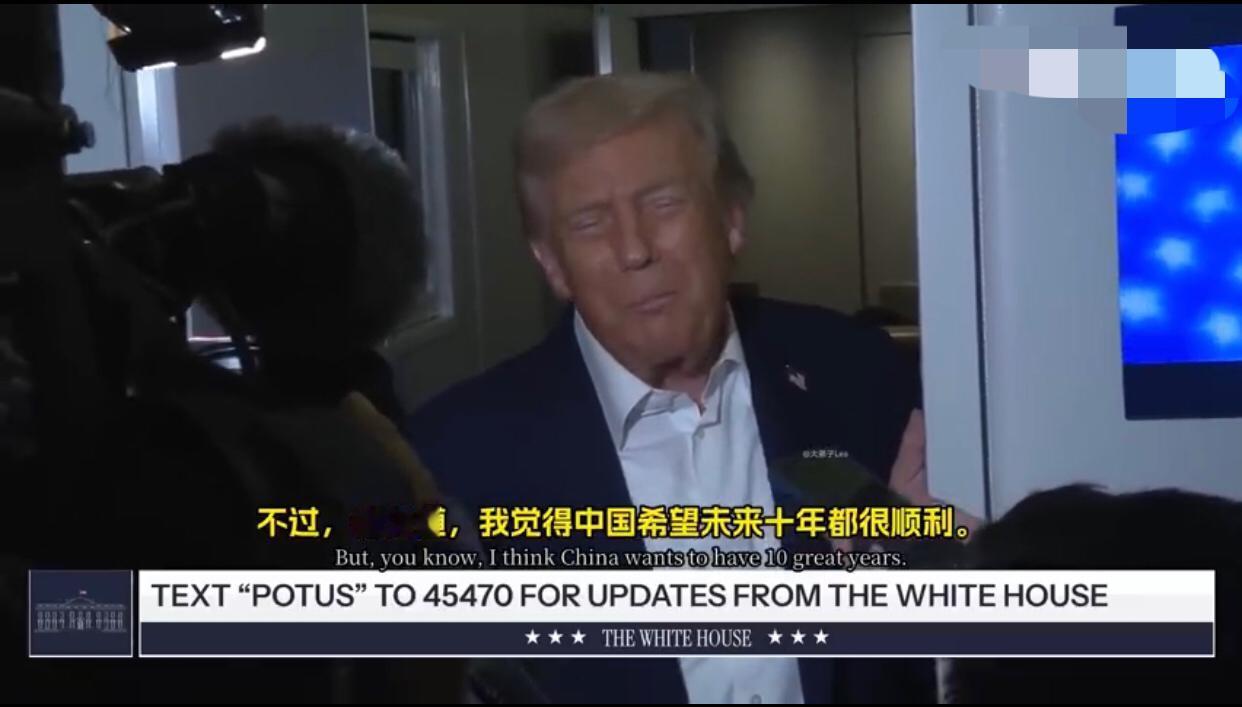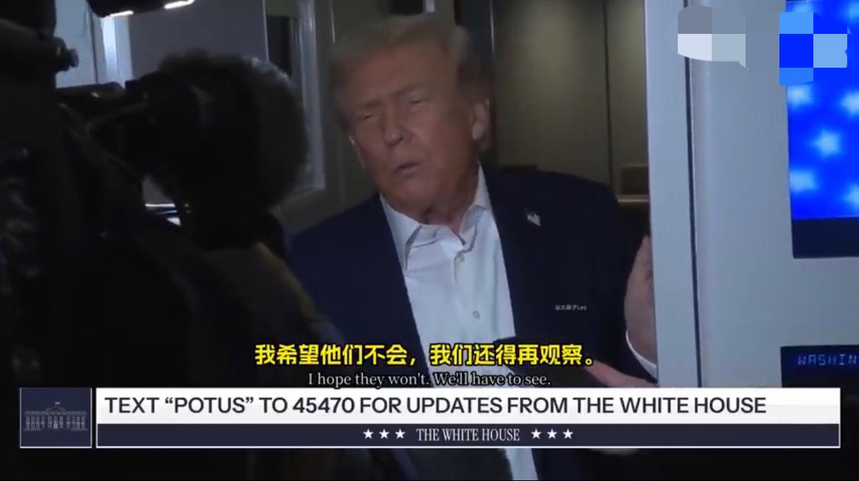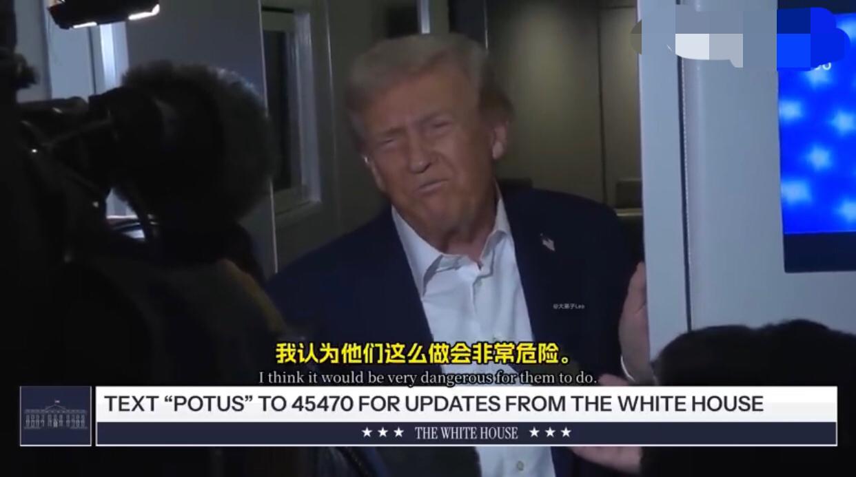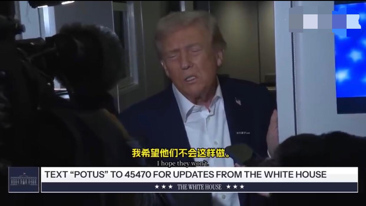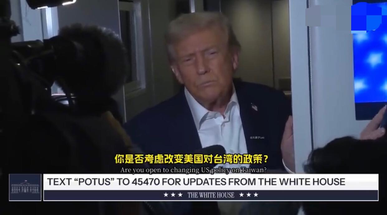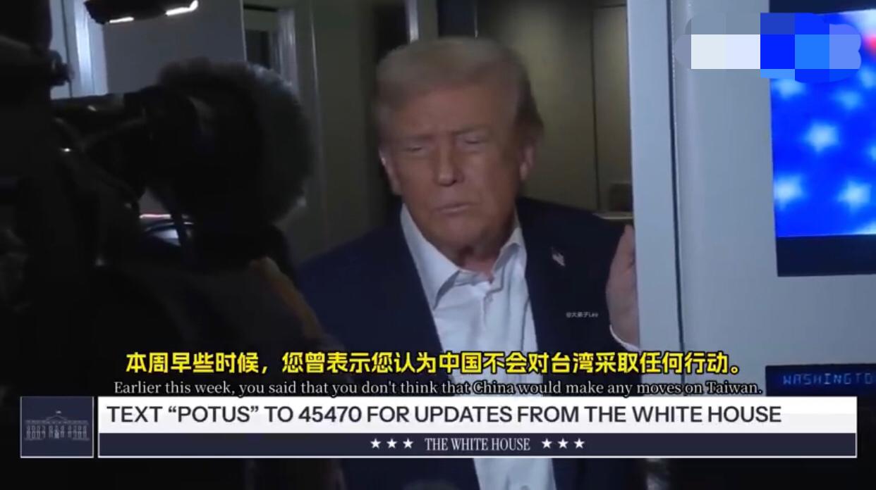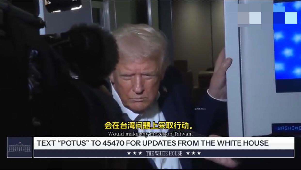 美国记者:“本周早些时候,您曾表示您认为中国不会对台湾采取任何行动,您为什么会这么认为?” 特朗普:“中国会做什么?” 美国记者:“会在台湾问题上采取行动,您为什么会这么想?” 特朗普:“我希望他们不会,我们还得再观察,他们可能会,也可能不会,我希望他们不要这样做,我认为他们这么做会非常危险。” 美国记者:“您是否考虑改变美国对台湾的政策?” 特朗普:“这个问题我现在不想谈,我不想让事情变得复杂,这次访问已经够复杂了,不过,你知道,我觉得中国希望未来十年都很顺利,他们完全有这个能力,当然也可能会遇到一些不好的年份,他们肯定不希望这样,我们的会谈一定会非常顺利。”