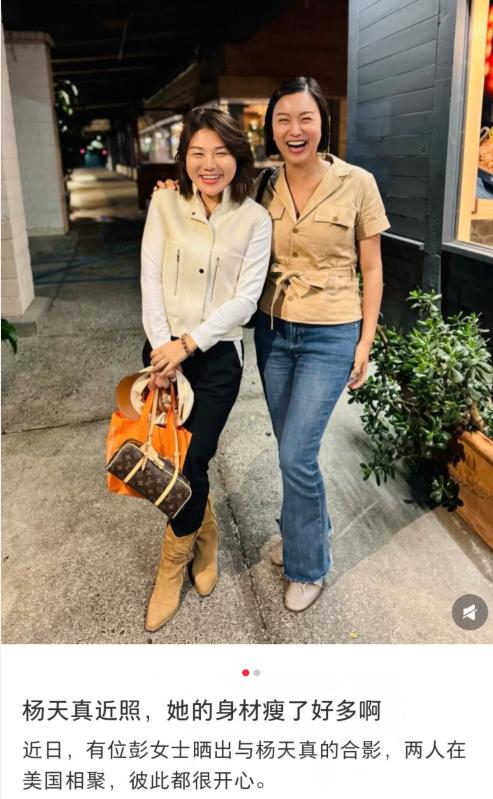 杨天真瘦了漂亮好多!最近有一位在国外的女生分享与杨天真合影,他当天身穿白色上衣搭配黑色长裤,脚上穿着靴子,手里拿着帽子和包包,两人靠在一起笑的十分开心。能够看到,现在的杨天真真的瘦成了一道闪电,不仔细看完全认不出来,与之前完全判若两人啊