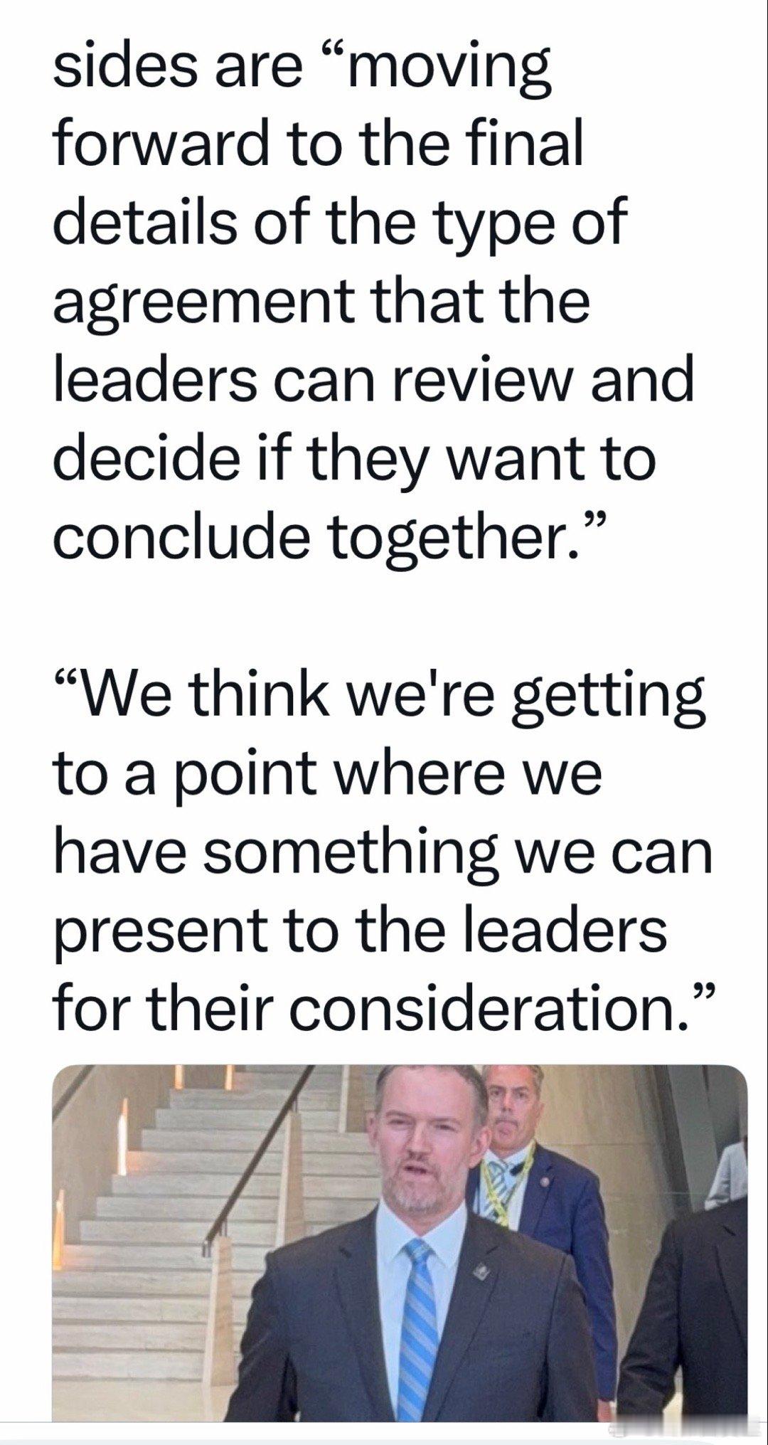 贸易代表:正在敲定最后细节,两人可以当场决定是否成交