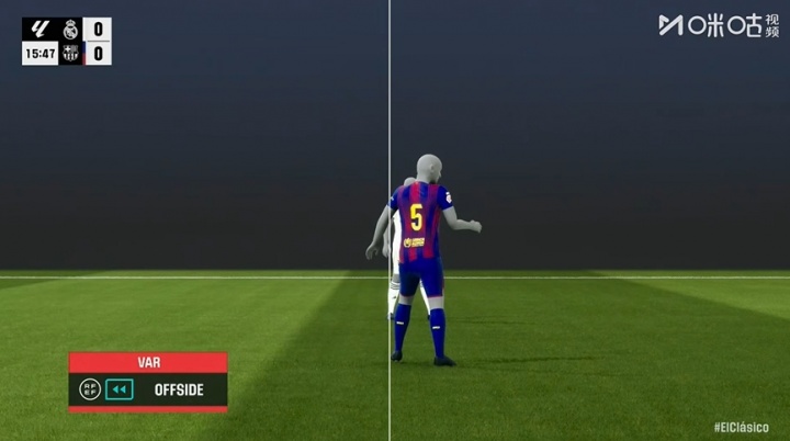 第14分钟,姆巴佩超级世界波破门,VAR介入后判定姆巴佩越位,进球取消↓