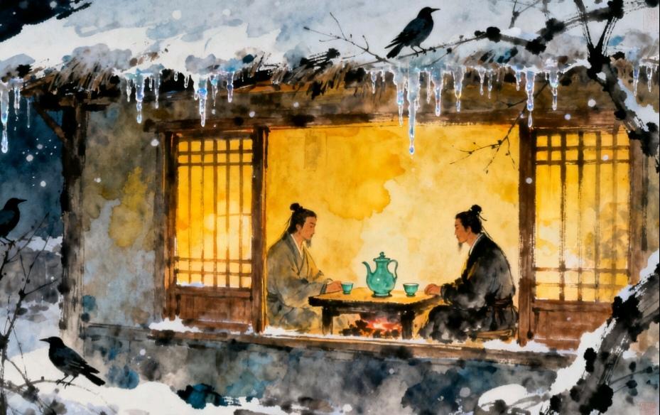 上联:冰雪煮酒孤自饮, 下联:夜深人静两知音。