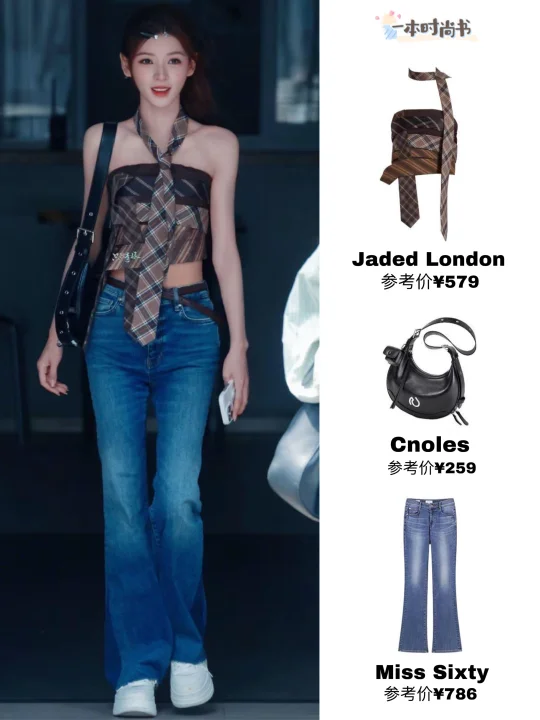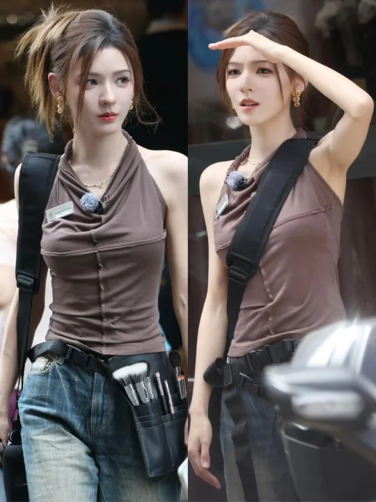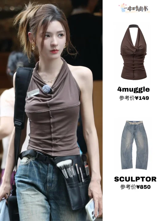 陈瑶秋日穿搭,咖啡色背心牛仔,轻曼时尚