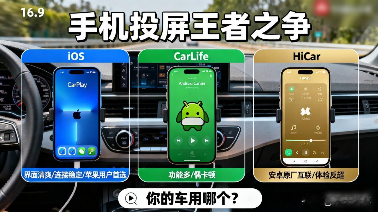 CarPlay和CarLife,谁才是手机投屏的王者? 苹果CarPlay界面清爽,连接稳定;百度CarLife功能多但偶尔卡顿。实测发现,如果你是苹果手机,无脑选CarPlay;用安卓手机,很多新车原厂的互联系统(如华为HiCar)体验已经反超CarLife了。 你的车用的哪个? CarPlay 车机互联 车机互动屏 鸿蒙hicar 车载hicar K-car K-Car