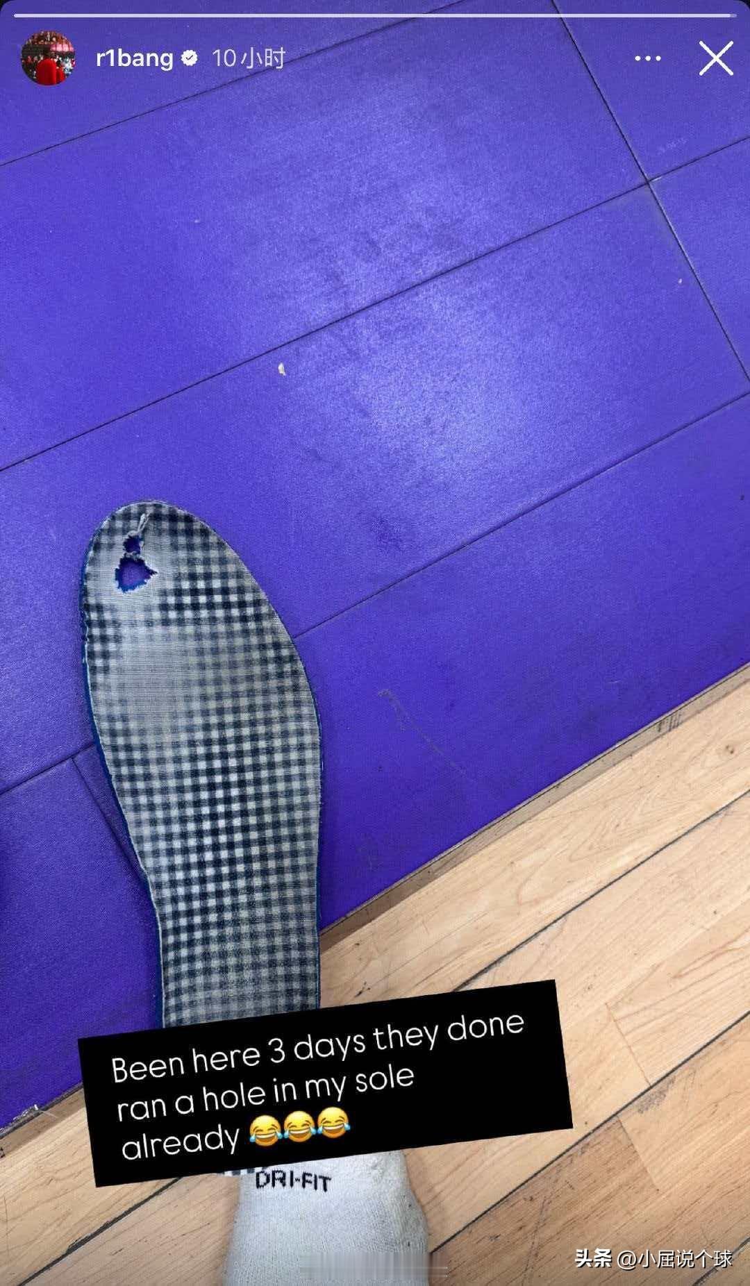 北控练的这么狠?新外援三天磨烂鞋垫 近日北控新外援雷吉佩里在社媒发文,到队三天