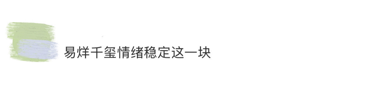 易烊千玺情绪稳定这一块 易烊千玺把情绪稳定拿捏得很到位。综艺上被选手质疑,他的回答有格局有态度,还能安抚对方情绪。采访里说自己情绪少波澜,性格淡然爱独处,这份成熟超过同龄人,也让他塑造了多个精彩角色,易烊千玺未来可期!