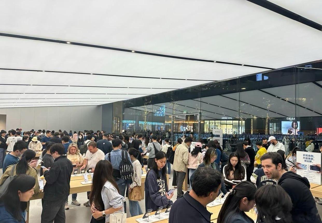 同一个商场里,华为、苹果的客流情况,拍摄者说前后就差几分钟。