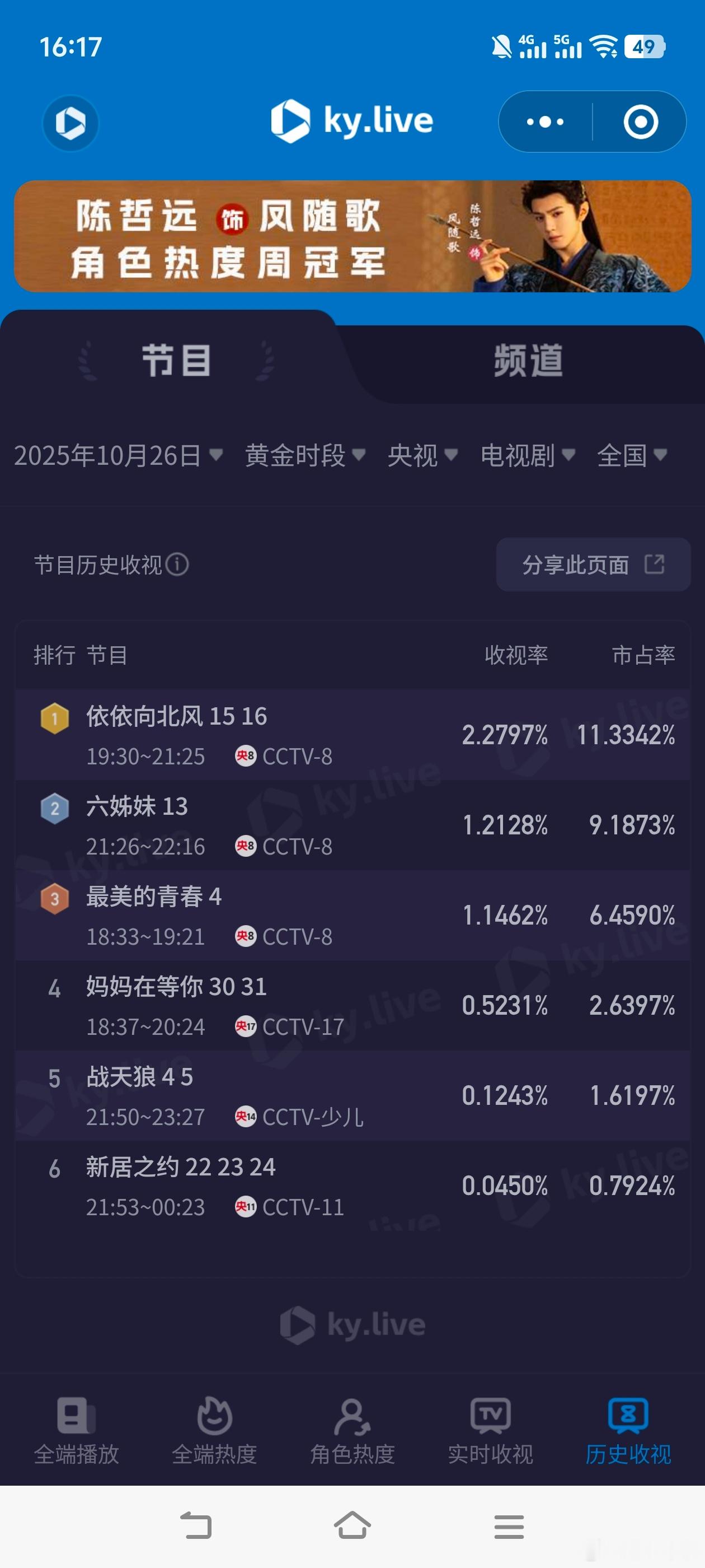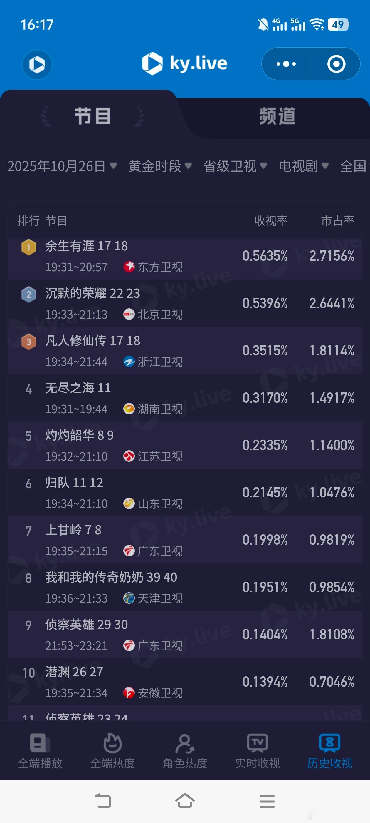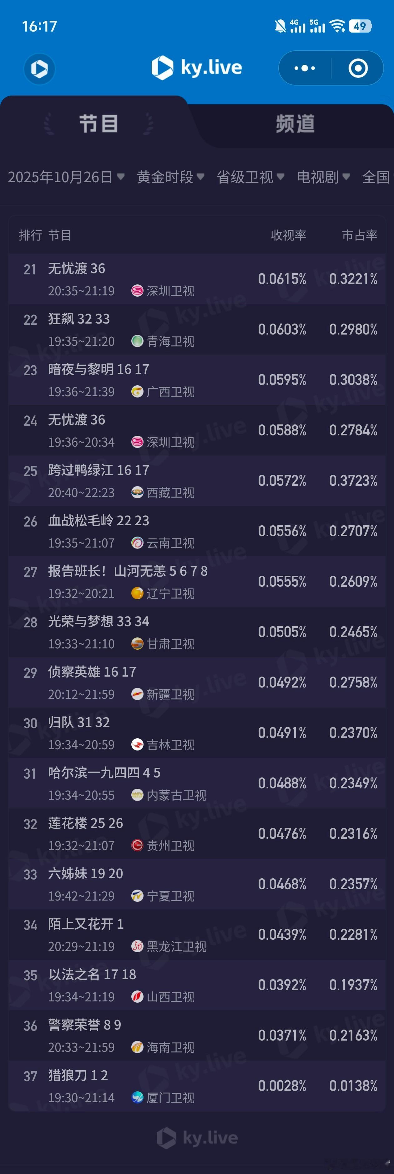余生有涯 10月26日,cvb收视日报,《余生有涯》全剧集均0.504!今年卫视第二部突破0.5的剧![鼓掌][鼓掌][鼓掌]