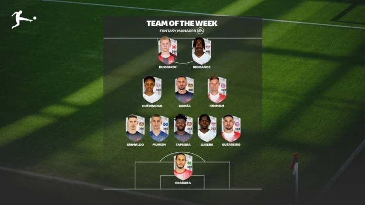 后卫:格里马尔多(勒沃库森)、米罗-穆海姆(汉堡)、塔普索巴(勒沃库森)、卢克巴(莱比锡)、格雷罗(拜仁)