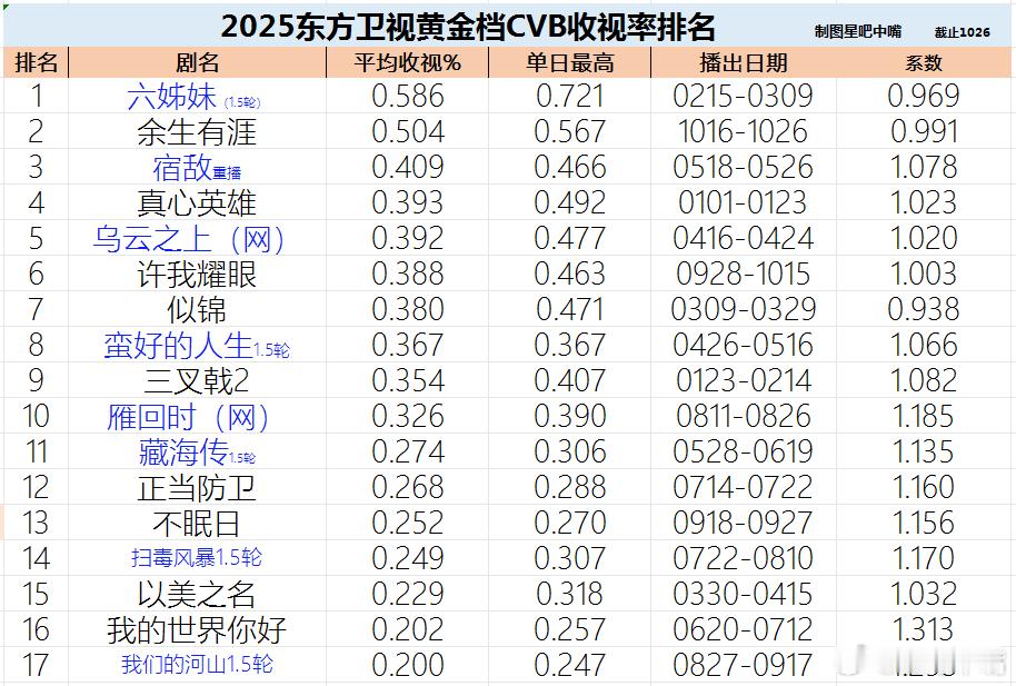 CVB集均0.504,暂列东方卫视2/17,暂列卫视频道第二。