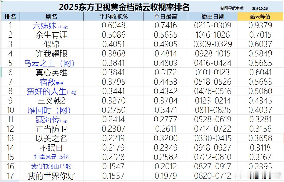 酷云集均0.5086,暂列东方卫视2/17,暂列卫视频道第四。