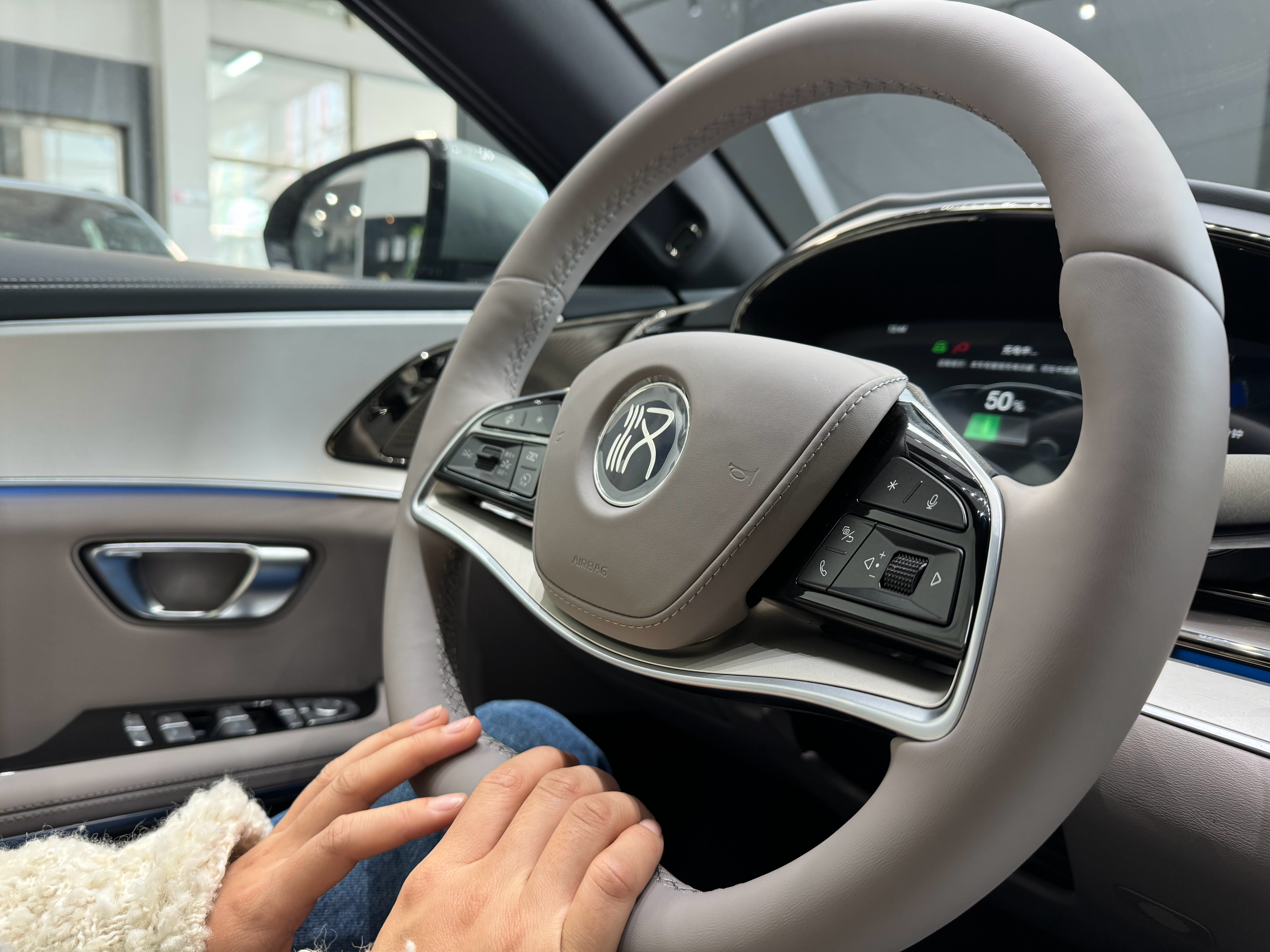 今天阿飞去店里看到了新款比亚迪汉,内饰的拉丝面板质感还行,一点不沾指纹[doge]