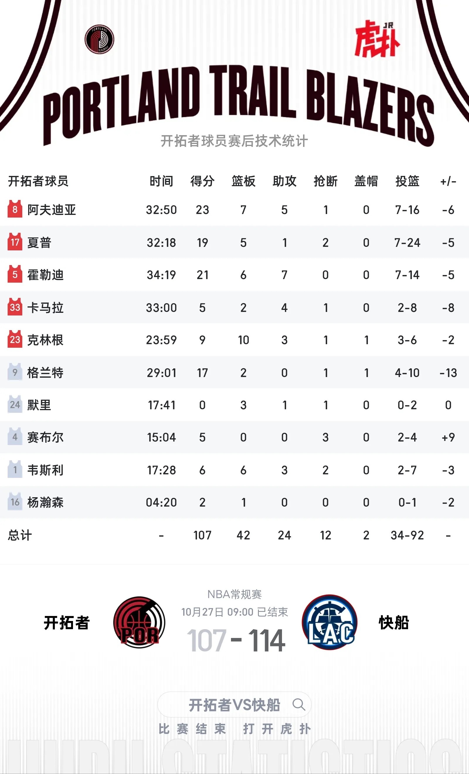 开拓者今天客场107-114负于快船,杨瀚森出战4分20秒得到2分1篮板,代理主帅斯普利特偏爱小个阵容,首发中锋克林根也只打了不到24分钟。明天上午10点半,湖人和开拓者都是背靠背作战,由于伤病,詹姆斯与同事小杨的相遇还得再等等[允悲]