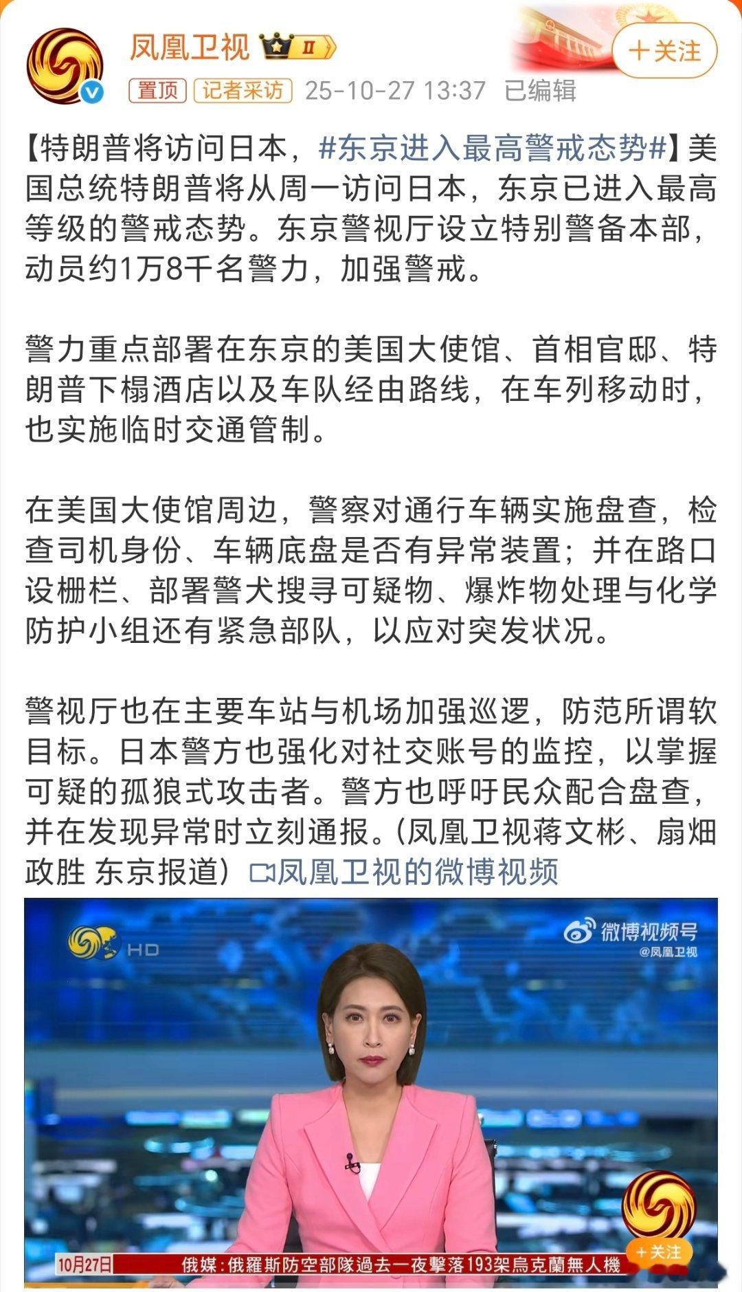 东京进入最高警戒态势老特去年差点步了安倍晋三的后尘。。。 有了安倍的前车之鉴,日本对老特安保升级也是情理之中,万一老特在日本出事了,那可是大问题啊!