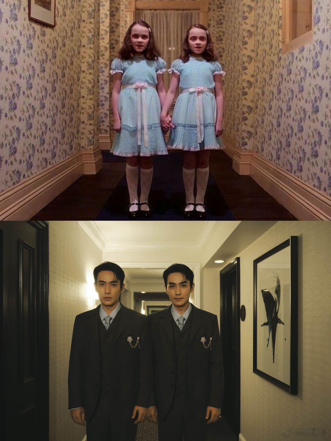 朱一龙造型致敬闪灵 朱一龙vogueworld的出发图太权威了!不仅采用了长画幅符合电影感,还致敬了经典电影《闪灵》中的双胞胎!出发图好符合活动主题,真的能从这些细节中感受到朱一龙的用心,太会拍了! ​​​