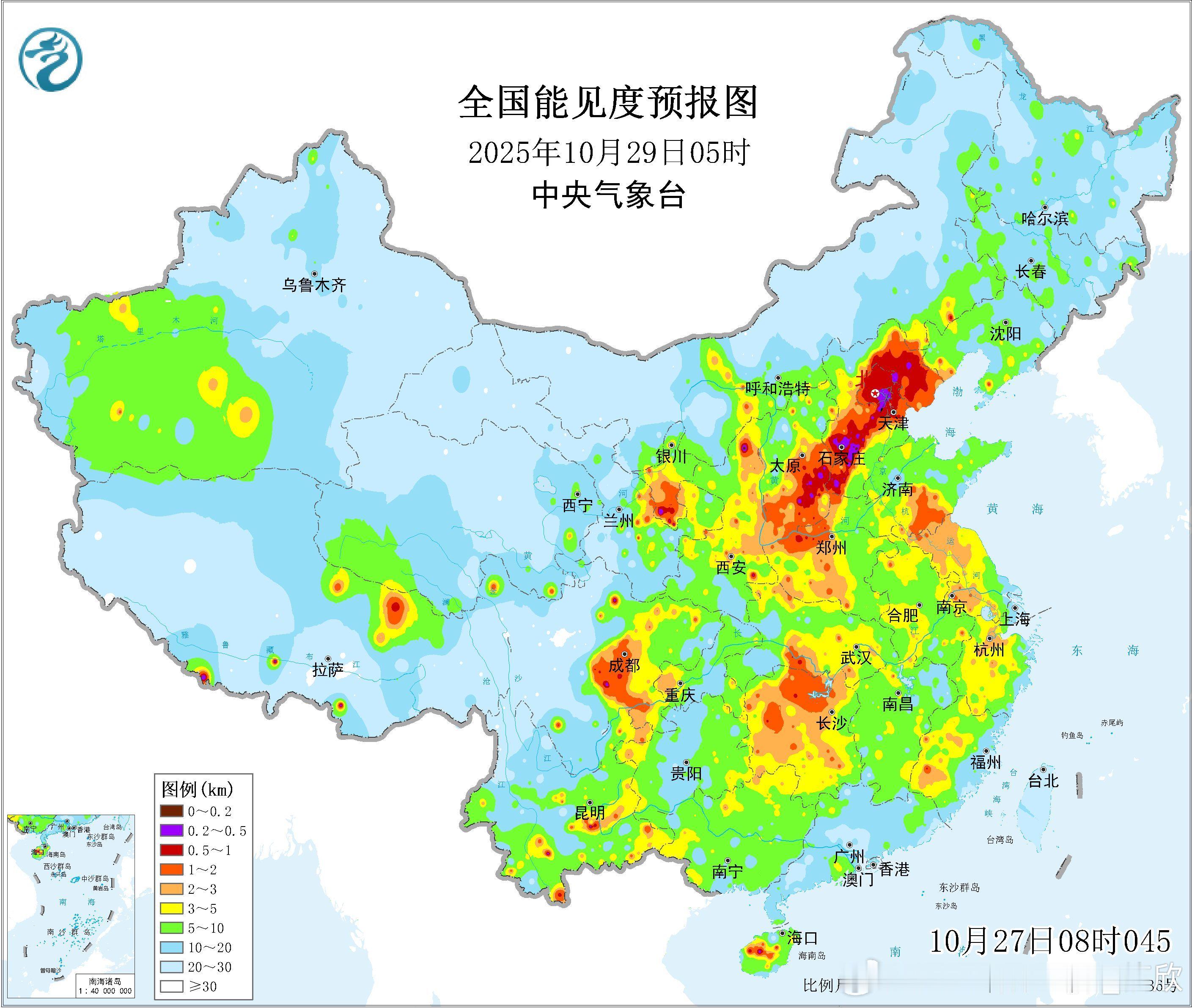 【雾和霾】未来2天,在华北黄淮等地,处于地面高压后侧,可能出现雾或霾。清晨时段湿度大,呈现为雾,白天湿度下降,呈现为霾。其实,更合理的说法,应该就是雾霾混杂。30日,受冷空气影响,上述地区雾和霾,将自北向南逐渐减弱或消散。