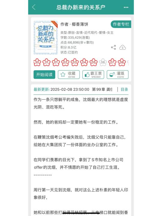 作者的文笔很好,不管是男女主感情的进展,还是男女主职场日常的描写,都很生活化,读起来甚至感觉作者大大是真的当过社畜。