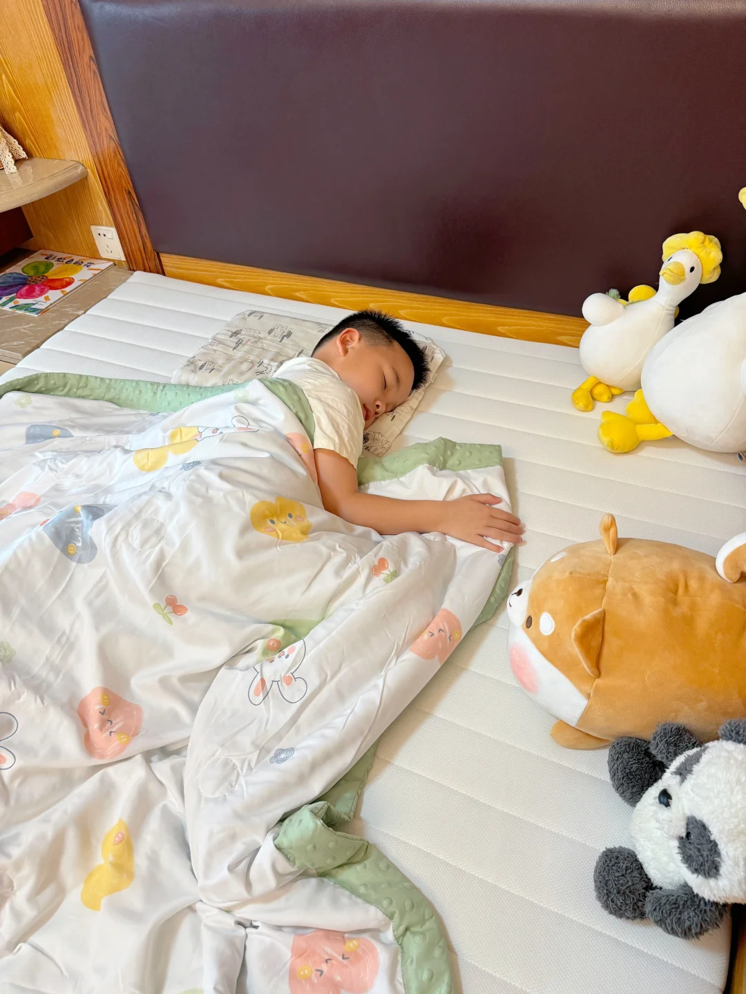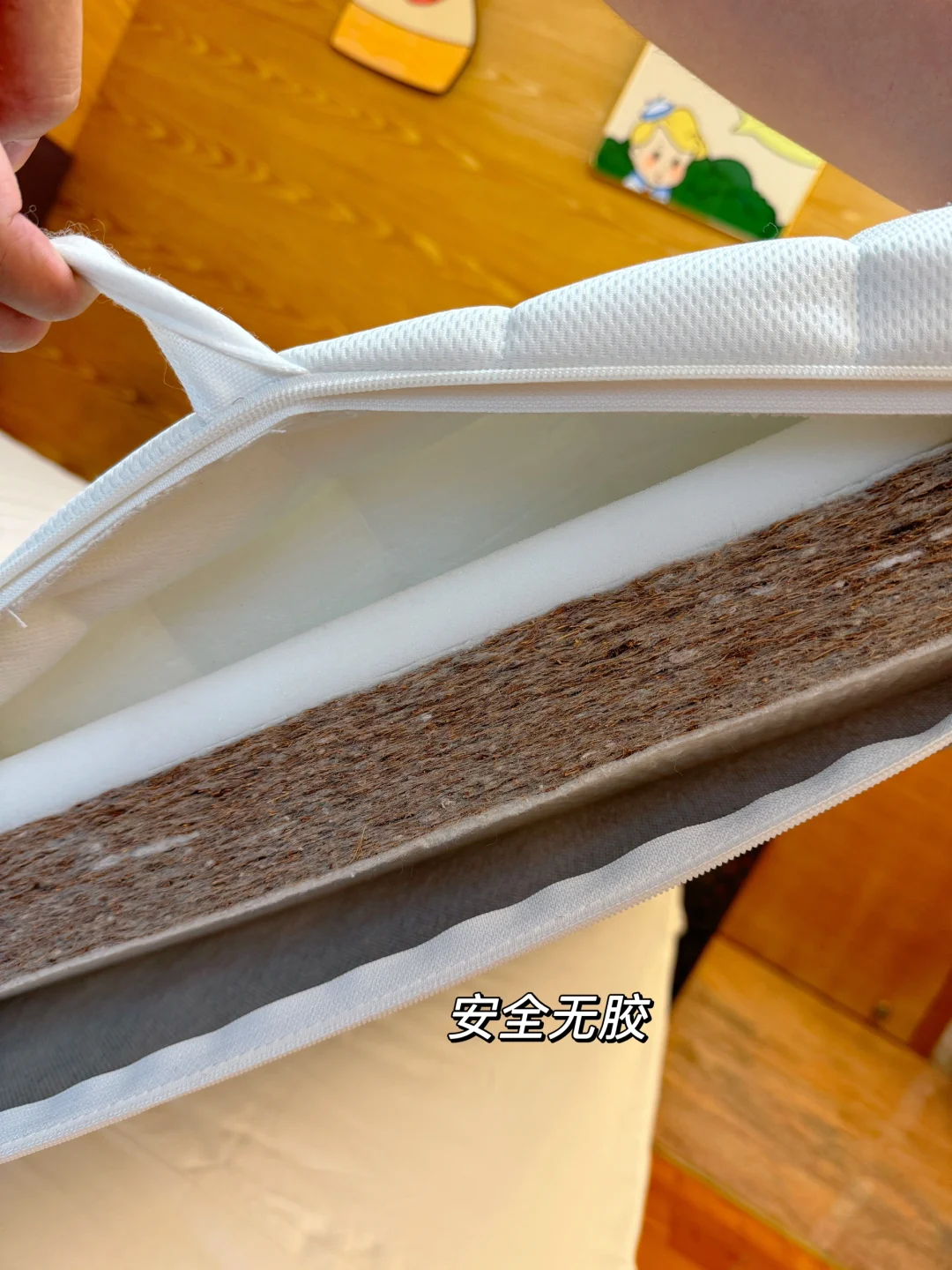 拆开外套细看,有椰壳纤维层支撑🥥顶层还有海绵缓冲🧽硬朗的同时满足舒适度,还能护腰护脊,特别适合还在生长发育期的小朋友。不含胶水,凑近闻只有淡淡的草席香🌱有次yeye半夜发烧,额头发烫却没哭闹,我摸着床垫干燥的触感,突然明白:原来支撑孩子好眠的😴不是柔软,而是这种会“呼吸”的硬朗👍