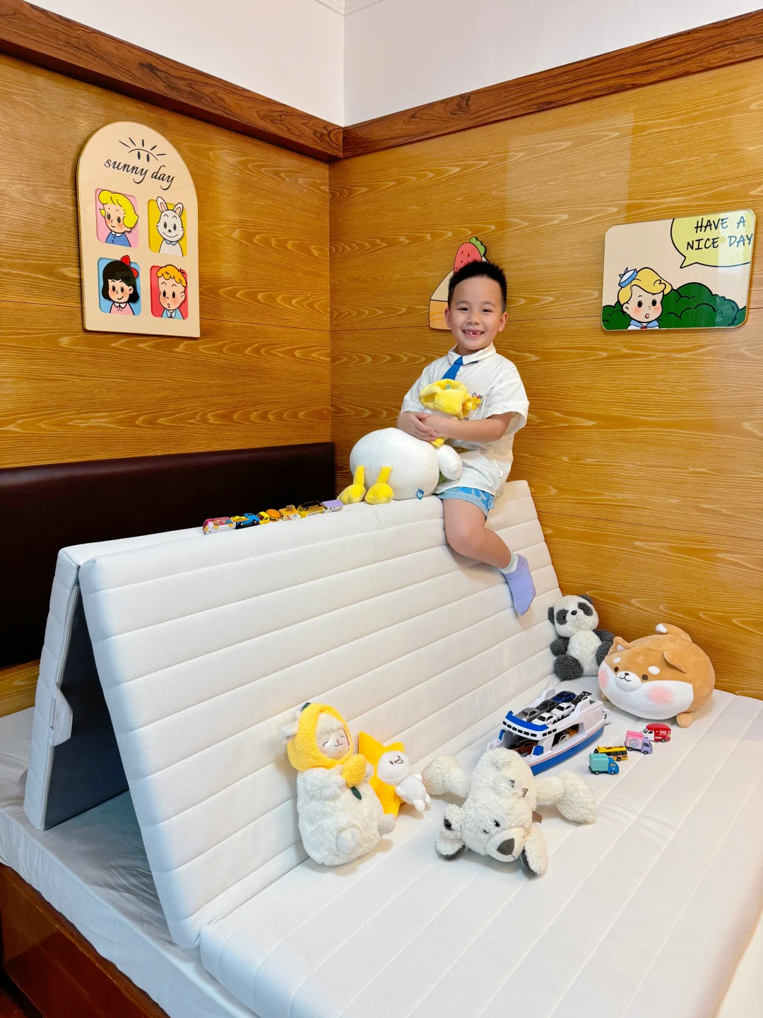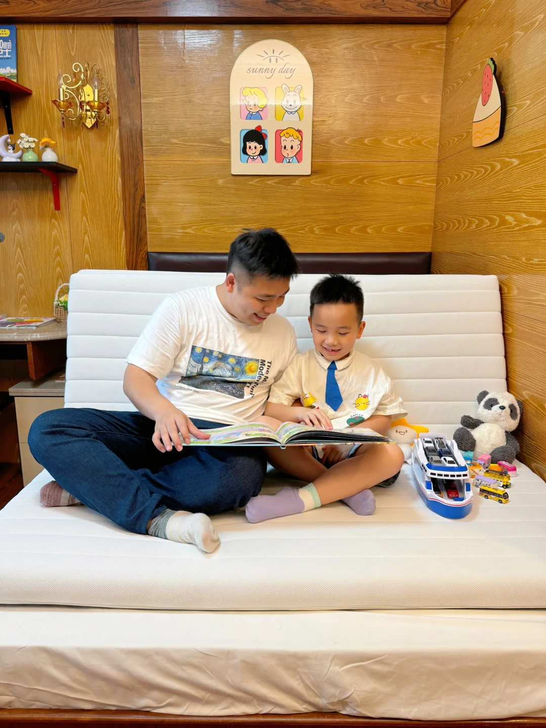 奥恩菲亚特床垫最大的特点是能轻松折叠成三层,我常常把它像积木般搬到阳台🧸让阳光穿透床垫的每一寸缝隙。漫长的回南天里,它总能第一时间捕捉到转瞬即逝的阳光☀️yeye喜欢帮着搬床垫,总是兴奋地喊:“这个床垫会自己站着晒太阳😍”晒完后躺上去,他又满足地说:“妈妈,我的后背不会黏住啦😄”