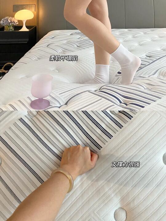 5、弹簧床垫的睡感主要看舒适层的厚度还有弹簧的线径和圈数,线径越粗,弹簧就越硬,圈数越多,弹性相对较小,支撑更好
