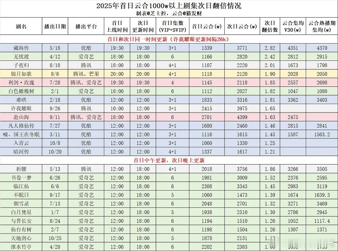 爱奇艺今年次日翻倍最好的依旧是任嘉伦的无忧渡,而且是在首日高开的情况下
