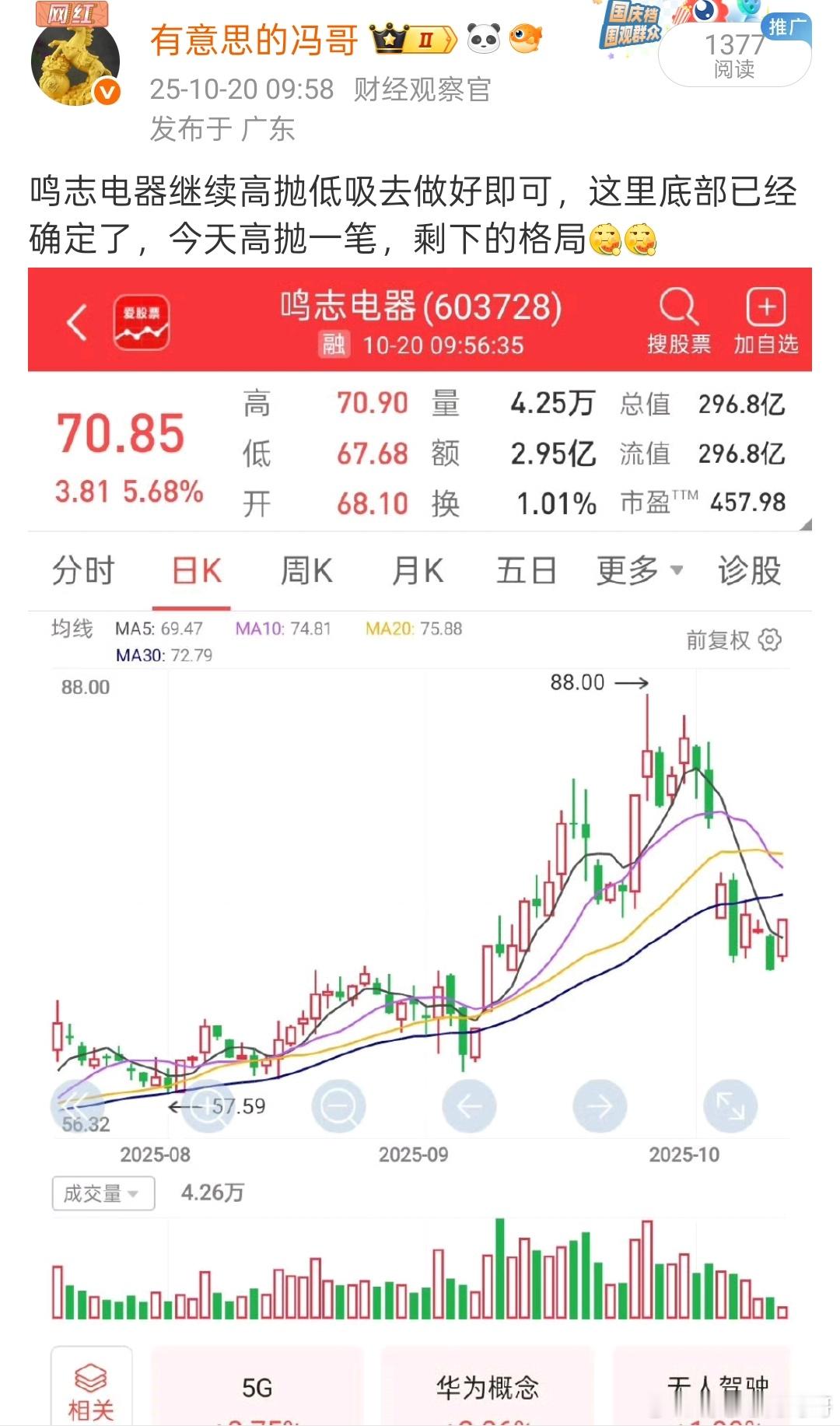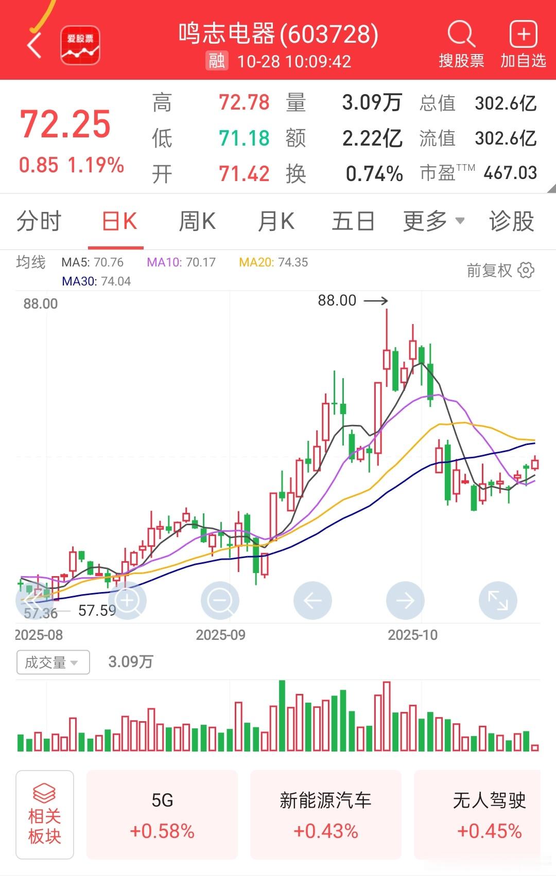 看图说话,鸣志电器冯哥前面也说了这里底部已经确立了,也是开始连续反弹,又是非常舒服的节奏,恭喜大家阿[吃瓜][吃瓜]