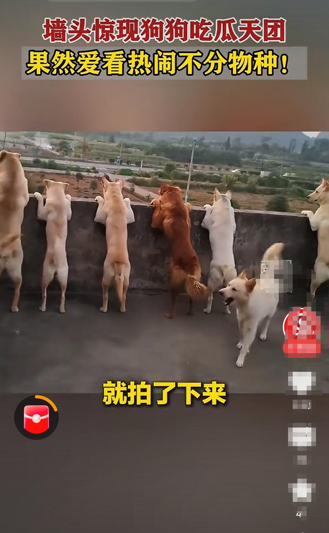 刷到这个视频又被逗乐了,几只狗狗齐刷刷地蹲在矮墙上,探着脑袋朝同一个方向张望,那专注的模样,活像一支训练有素的“吃瓜观测小队”。 也不知道究竟发生了什么——是隔壁大妈在晒腊肠?还是两只野猫在争地盘?又或者只是邻居家小孩在玩新玩具?但这些都不重要了。重要的是,这几只狗狗用最朴素的姿势,给我们上了一堂生动的“生活哲学课”:原来放慢脚步,对世界保持一点好奇,就能发现日常里藏着的小乐趣。 看来爱看热闹这事,是所有生灵的本能啊!这份毛茸茸的“吃瓜”现场,比任何刻意编排的喜剧都要可爱,你们觉得呢?