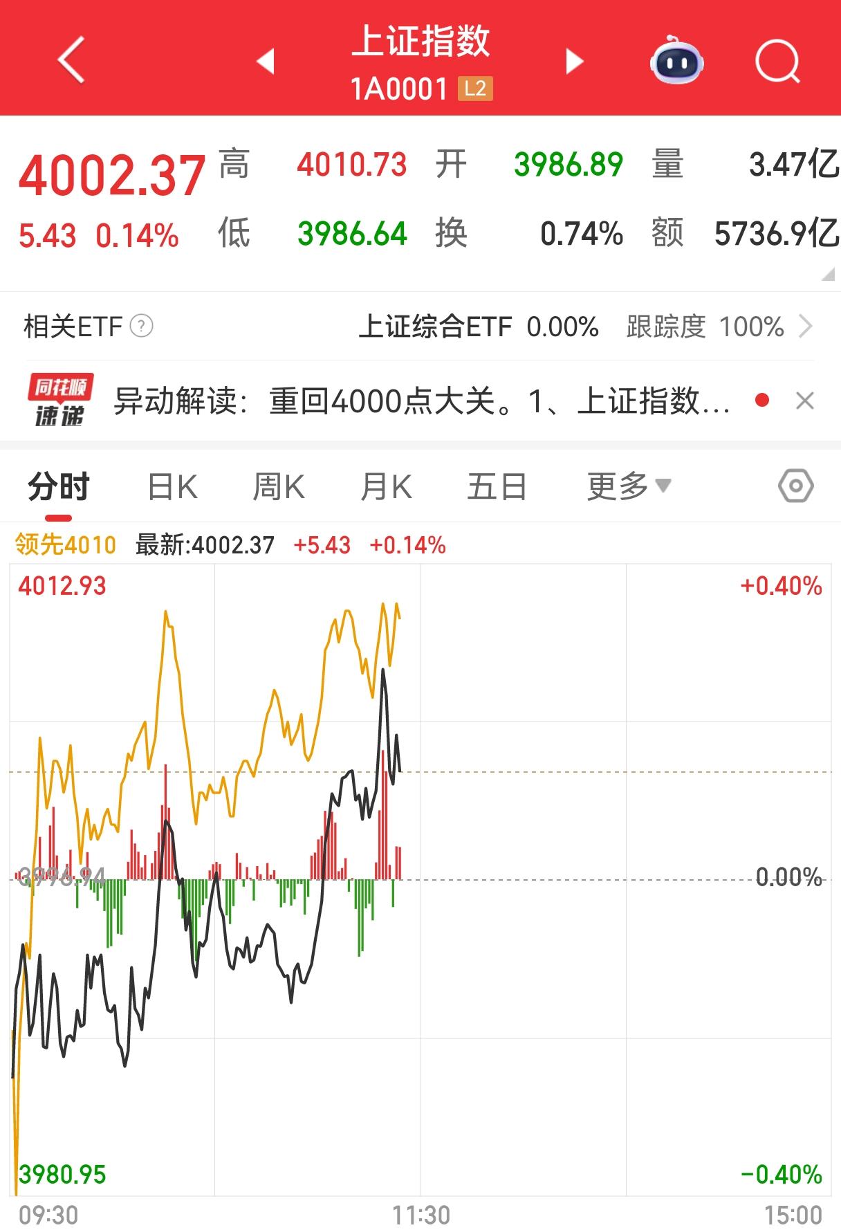 10月28日上午,沪指站上4000点,创10年新高。历史上沪指位于4000点上方也就2007年、2008年及2015年。这次时隔十年再上4000点,绝对是股市里的大事件。 新闻联播作为重要的新闻窗口,一般会报道有重大影响力的财经消息。沪指破4000点,对股民和金融市场来说意义非凡,要是今晚新闻联播发布相关新闻,也不意外。毕竟这反映了市场的动态和经济形势,说不定还能给大家吃下定心丸呢。 A股指数 股市全面反弹