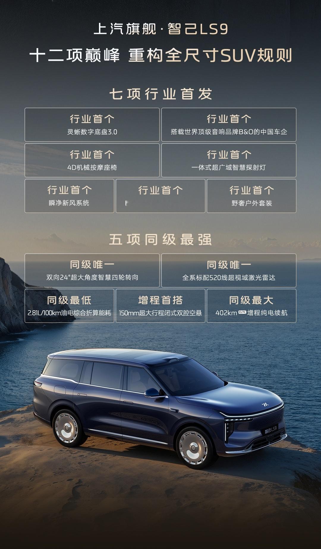 智己LS9创12项行业巅峰上汽旗舰智己LS9官宣11月4日预售发布