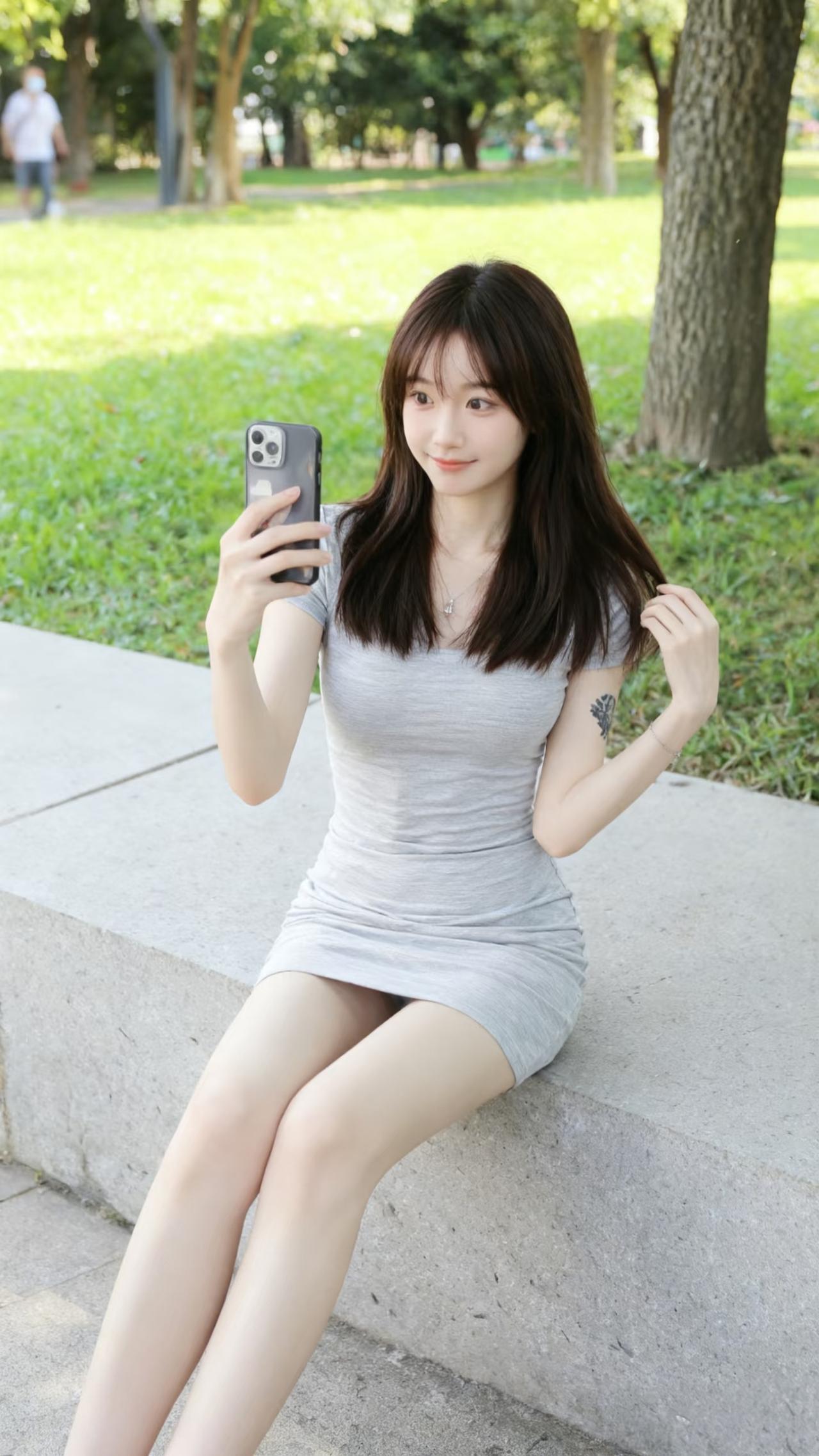 张天爱跟素人合影,胯真的好宽,大宅院似的