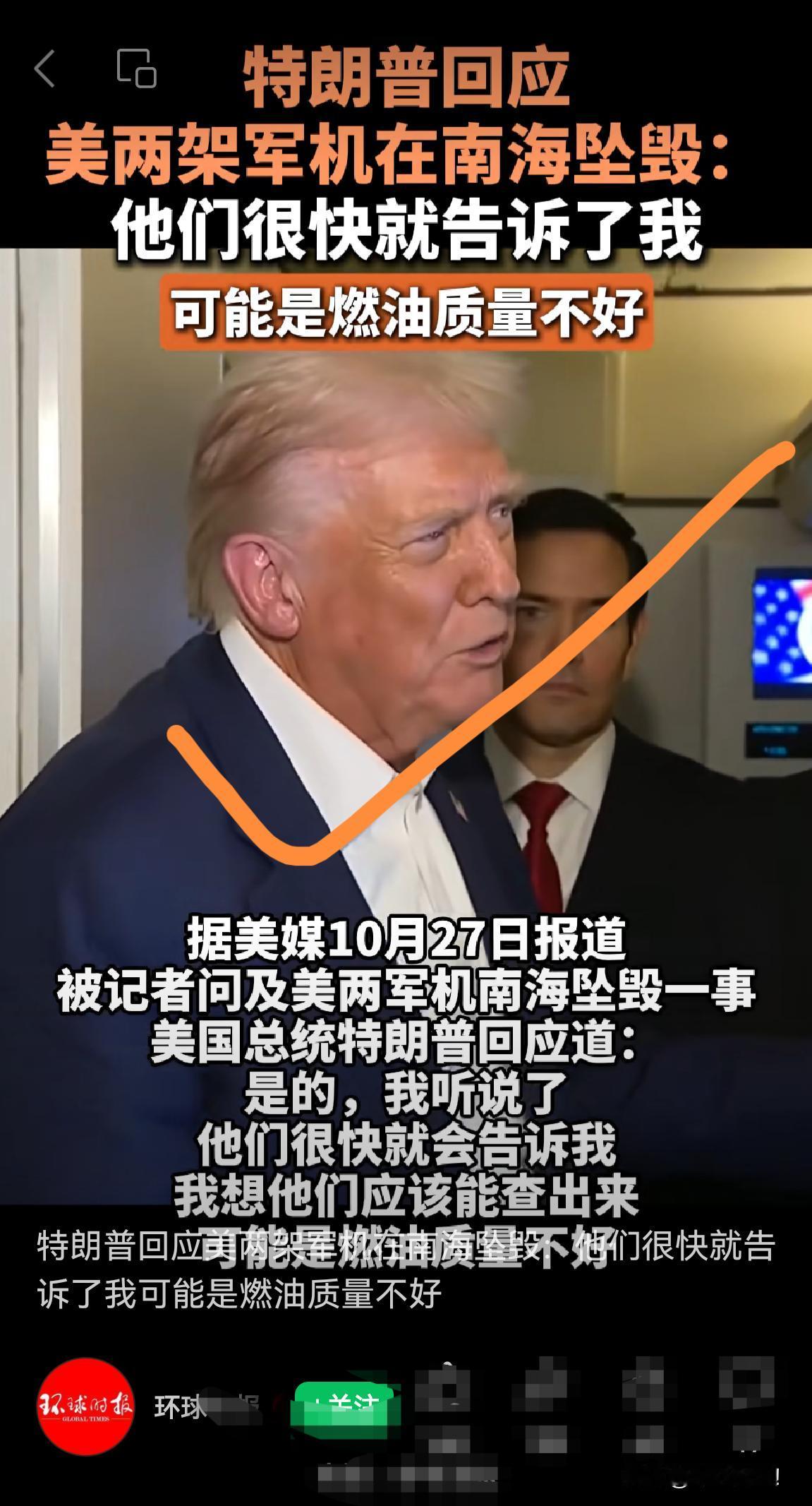 美两军机坠毁南海,特朗普怪燃油质量不好!知道最近美军将士有脾气,特别召开美军全球高级会议之后,又发不上工资,内心有怨言啊!如果特朗普还是“识实务者为俊杰”,没发飙,否则,担心在马来西亚回不去了!