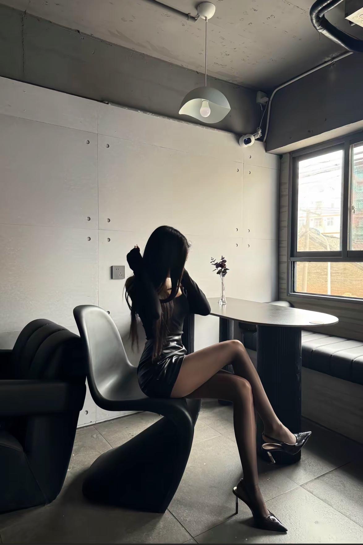 优雅黑丝女郎,静坐白色沙发,气质满分!