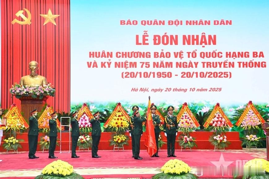 2025年10月20日越南《人民军队报》建报75周年纪念大会,越共中央委员、国防部副部长Nguyễn Văn Gấu阮文熊中将在大会上向《人民军队报》授予保卫祖国三等勋章军事历史全触达