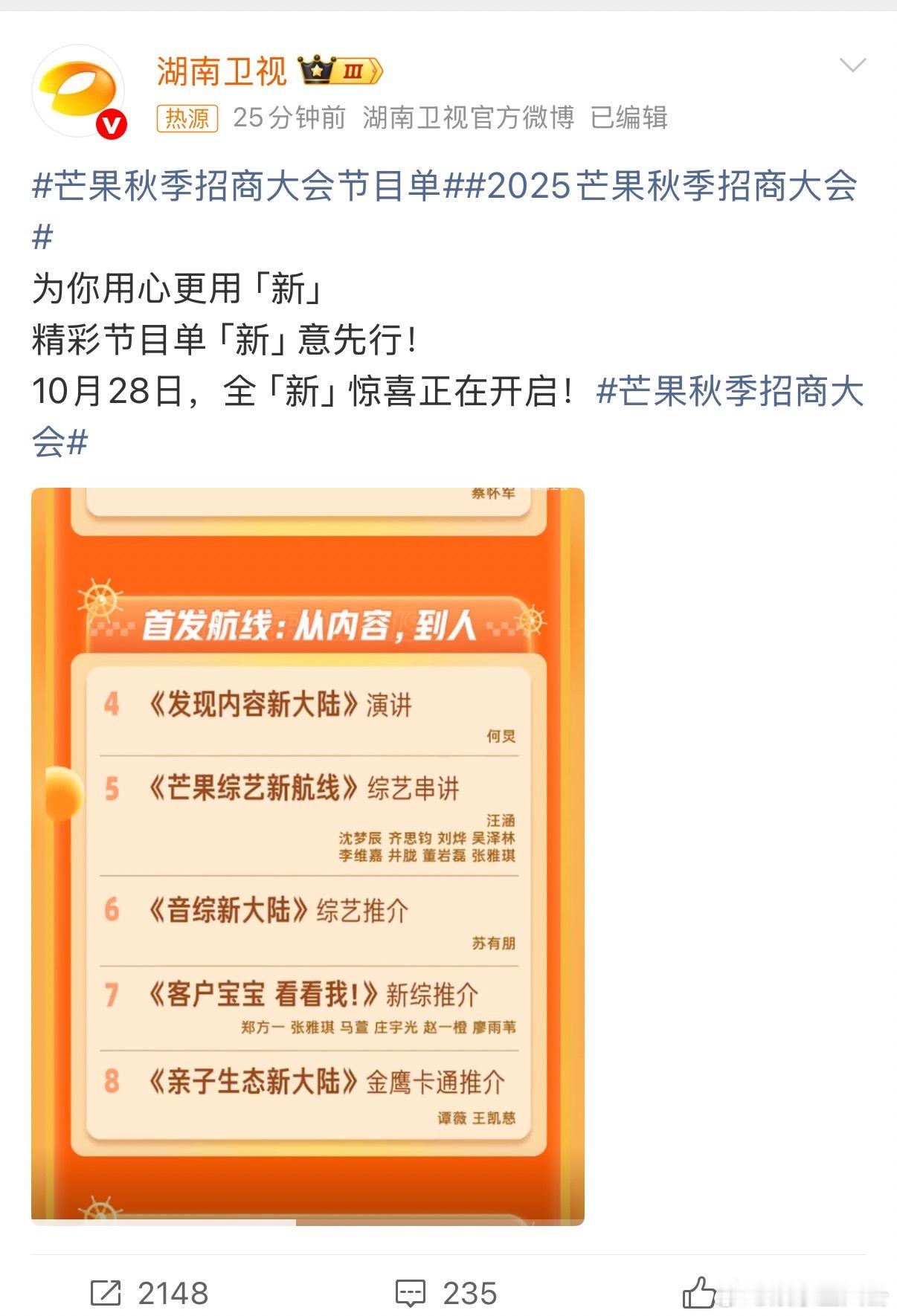 芒果秋季招商大会节目单《一拳超人》登陆黄金档!格斗届“超级碗”直播,这绝对是年