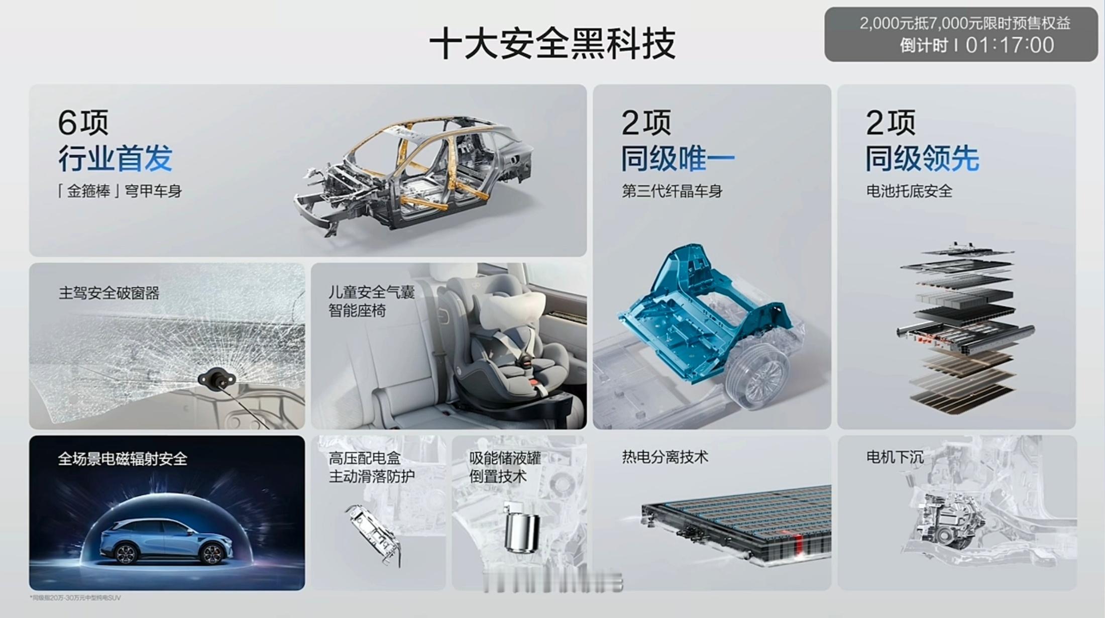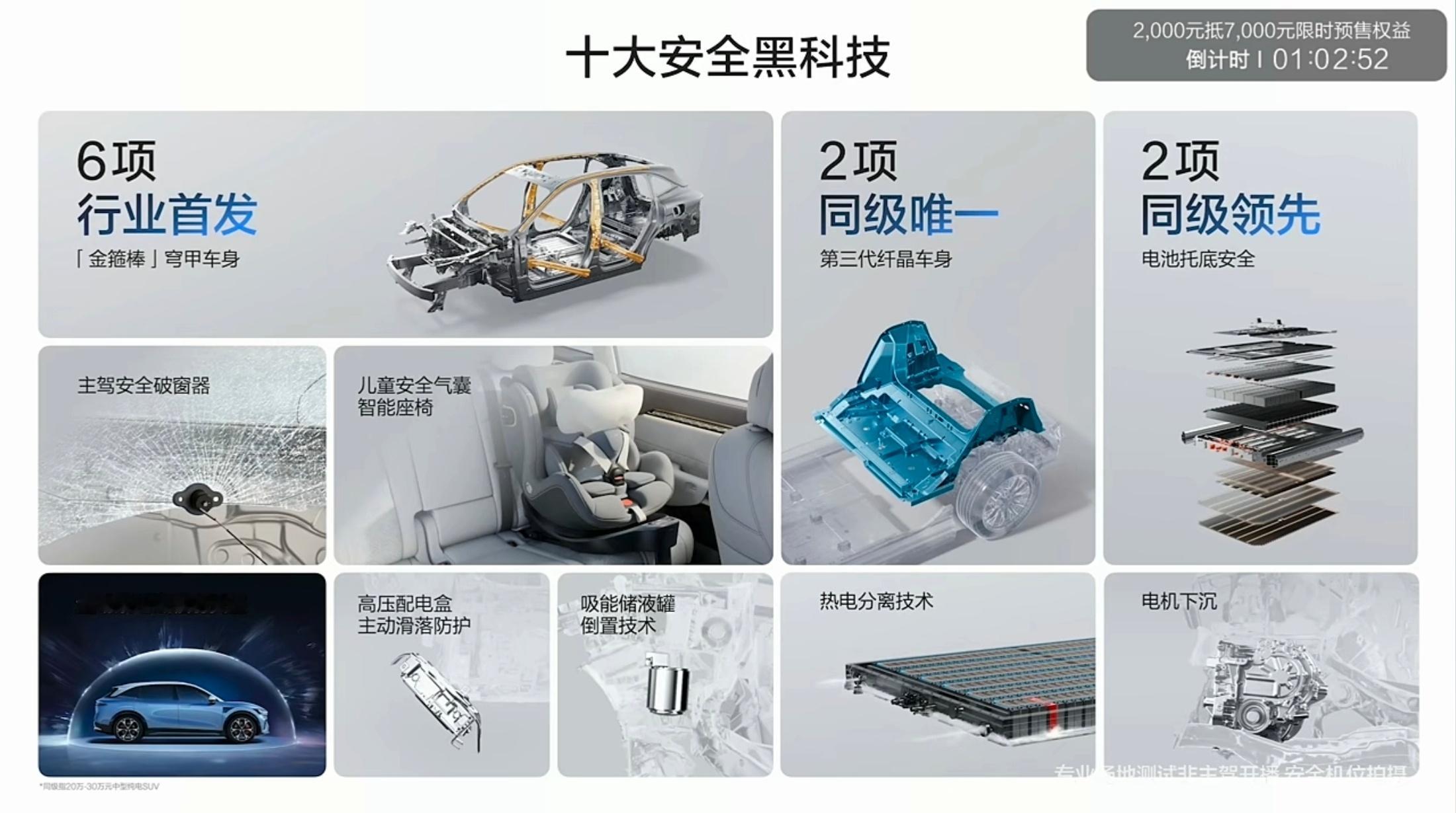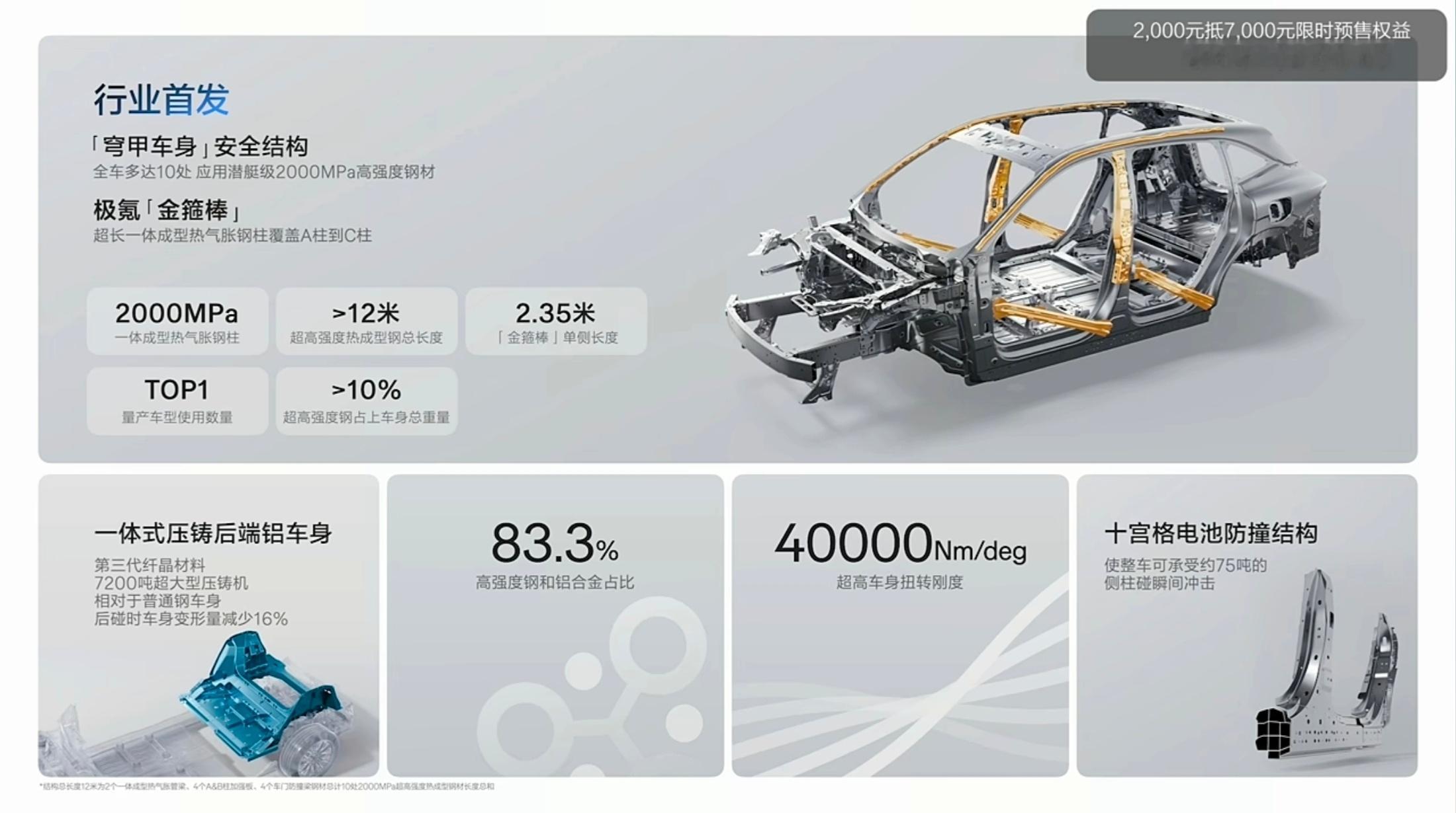 此外,还保留金箍棒穹甲车身、“一键破窗” 主驾安全破窗器、儿童安全气囊智能座椅、全场景电磁辐射安全、电机下沉等核心安全配置,全方位守护驾乘安全。